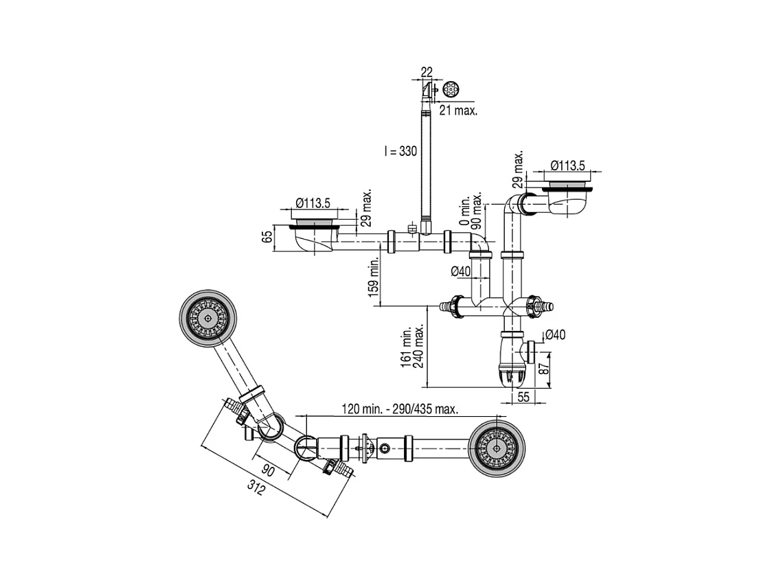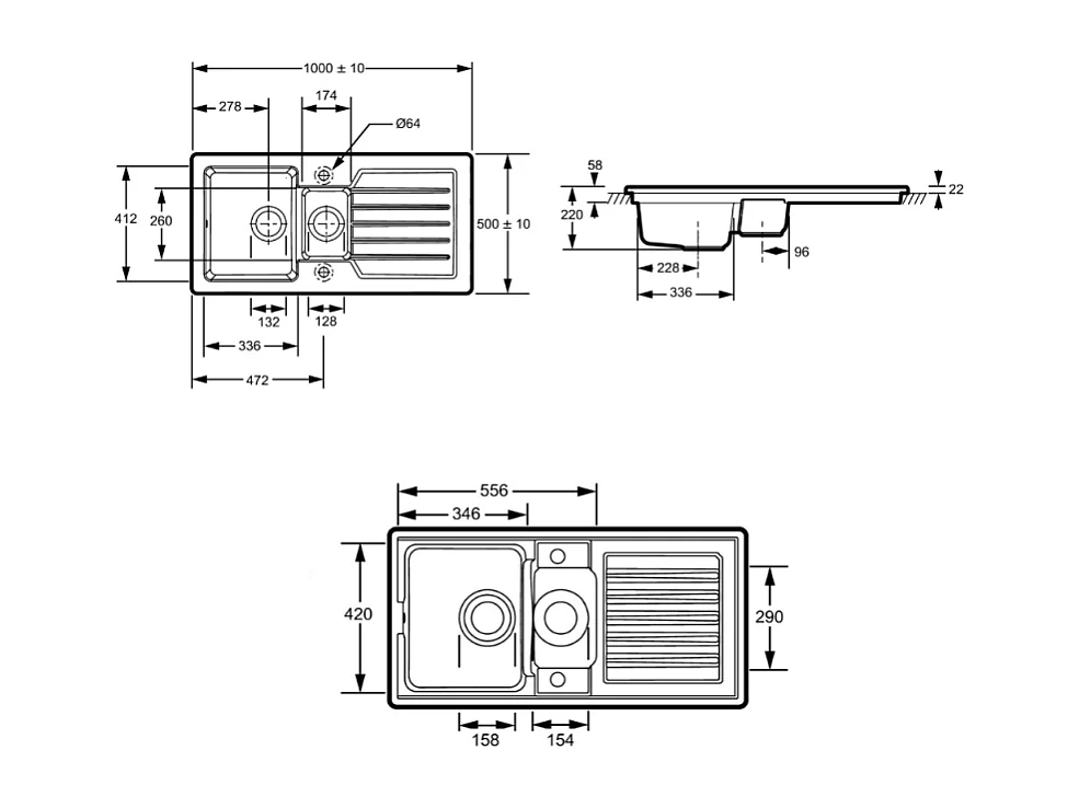 Evier à encastrer 1 bac et demi JACOB DELAFON Gaspard