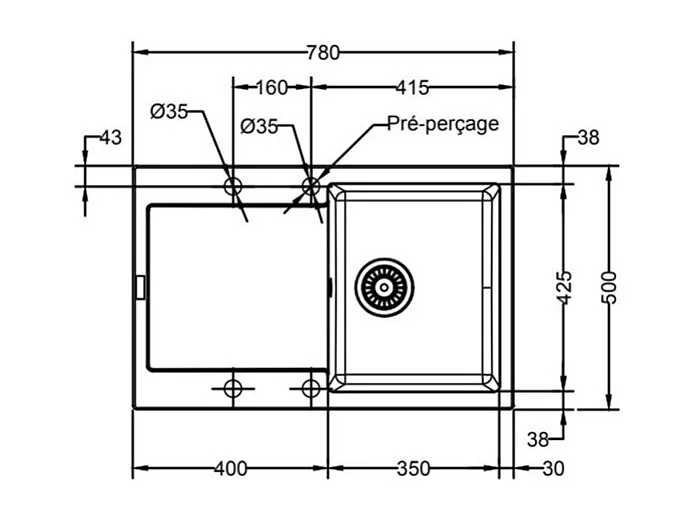 Evier à encastrer 1 bac FRANKE Maris Fragranit avec vidage manuel 78 x 50 cm Stone