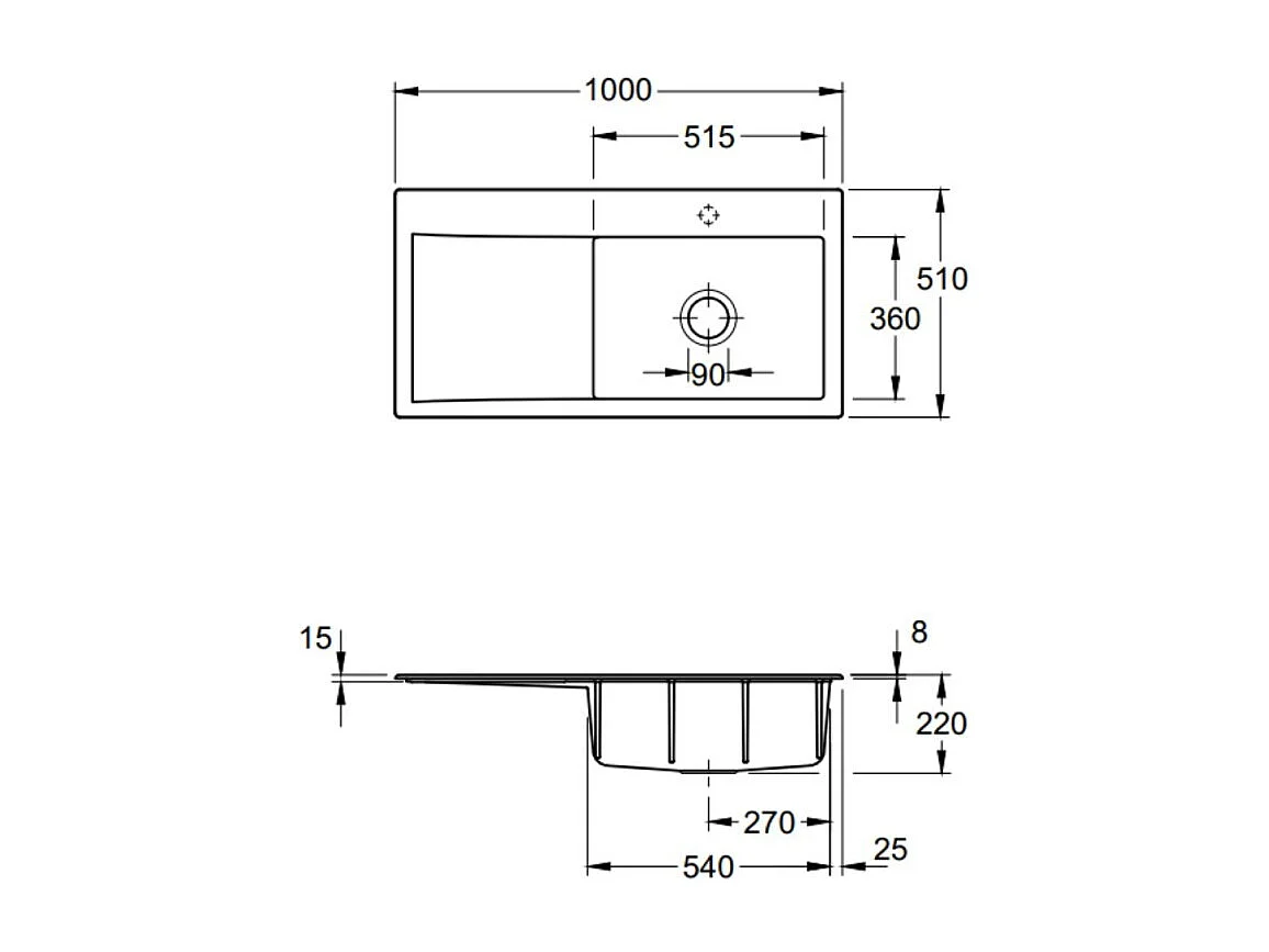 Evier a encastrer 1 bac VILLEROY ET BOCH Subway Style 60 egouttoir à gauche vidage automatique Beige CeramicPlus