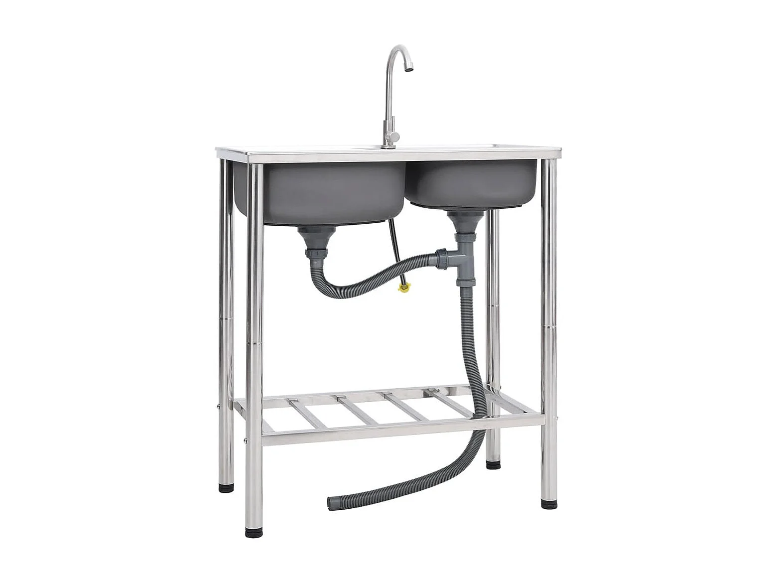 Évier de camping Double Évier avec robinet Acier inoxydable FR223613