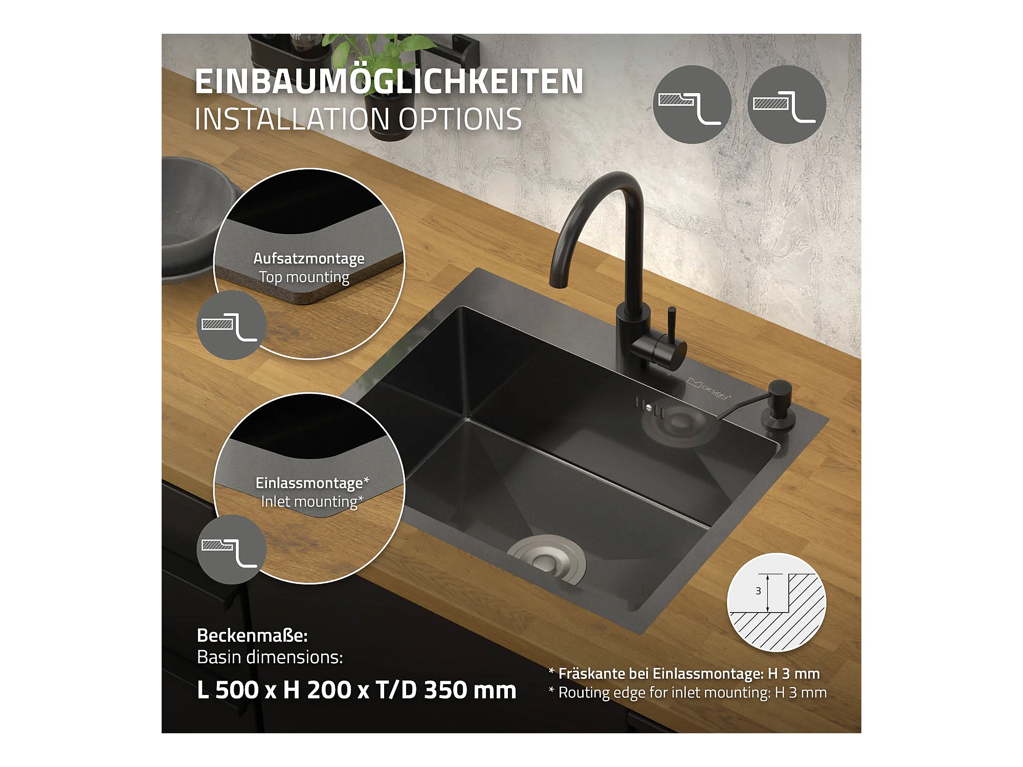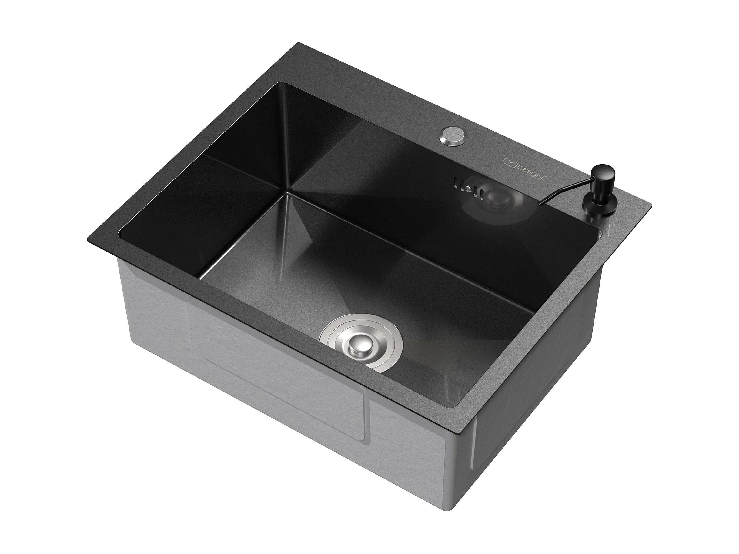 Évier de cuisine à encastrer acier anthracite 55x45 cm vidage+distributeur savon