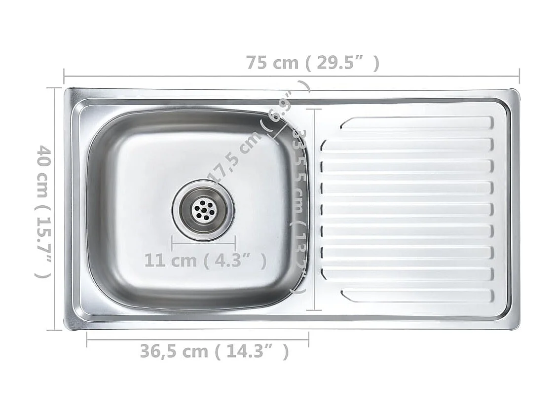 Evier de cuisine avec argenté 75 x 40 x 18 cm 02_0002358