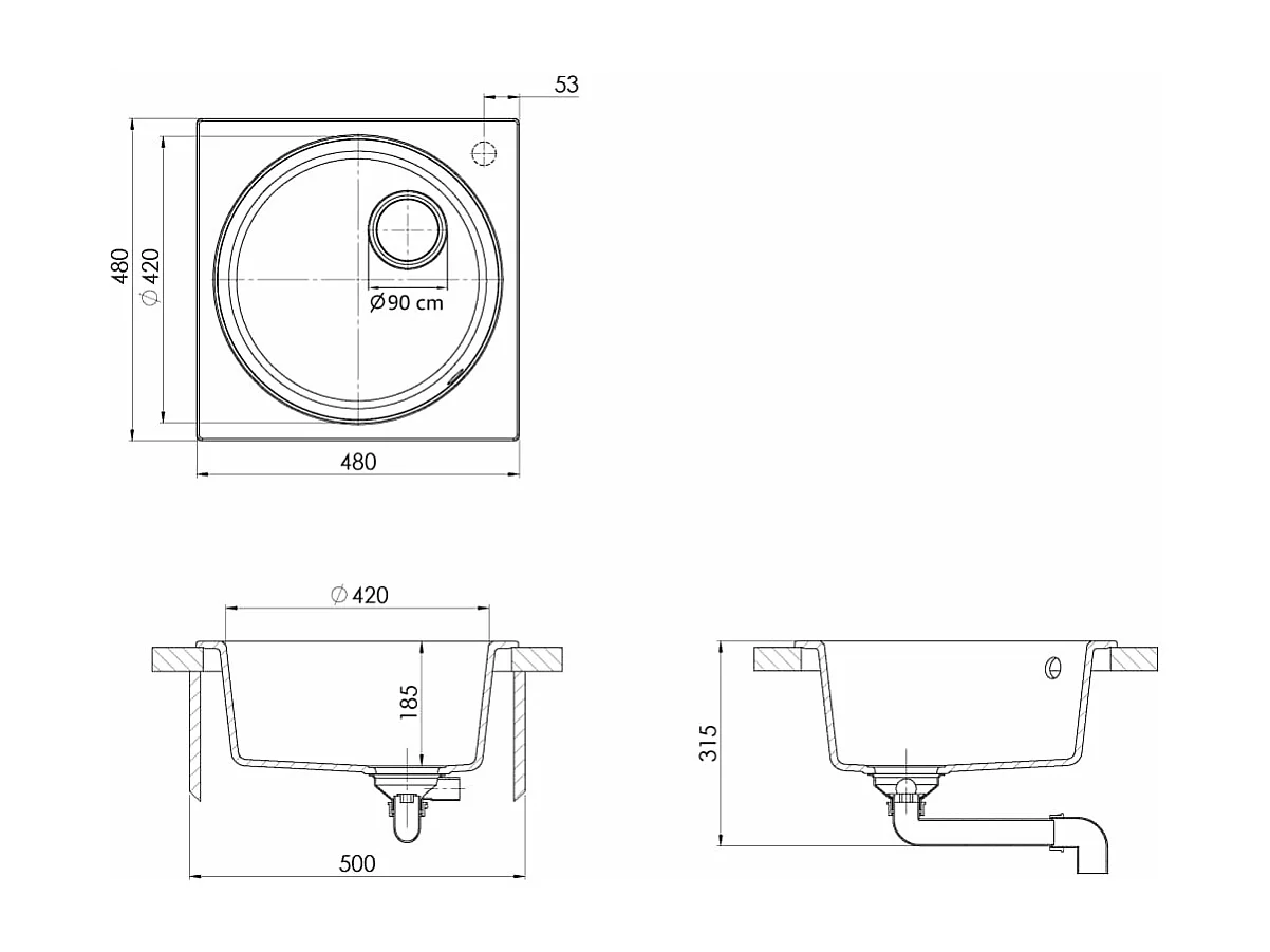 Évier de cuisine avec noire 48 x 48 x 19.7 cm 02_0002385