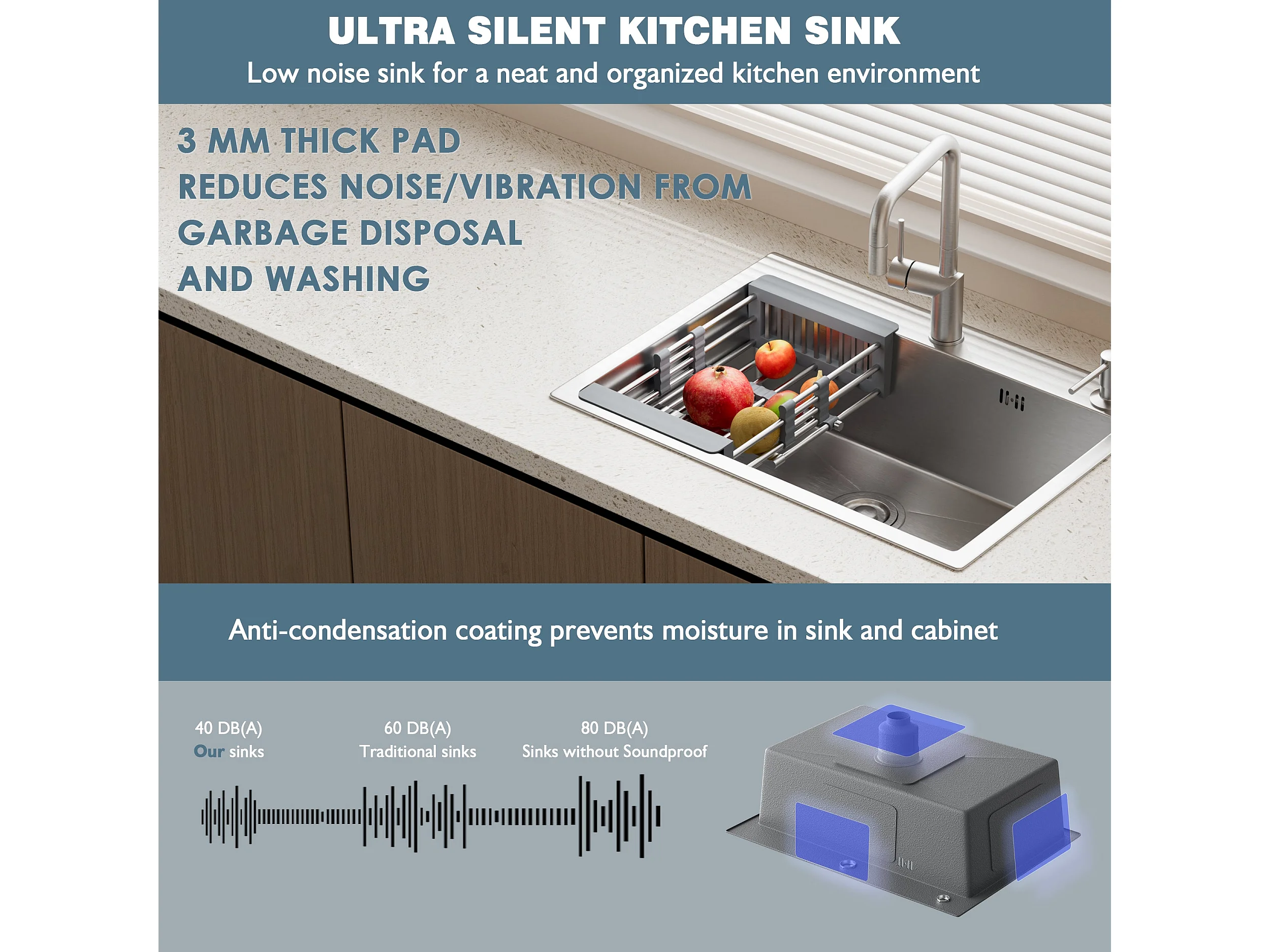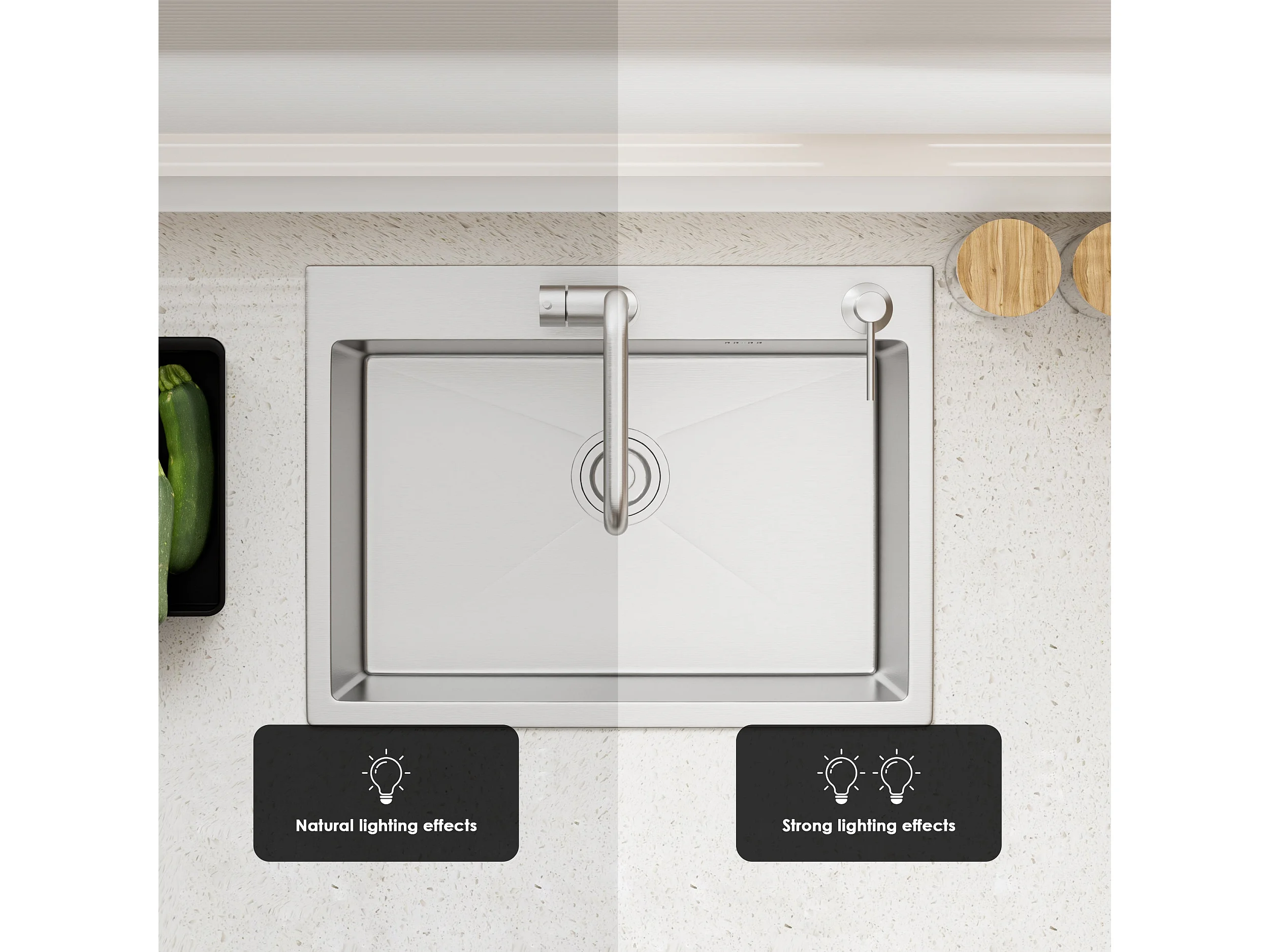 Évier de Cuisine SucceBuy Évier de Cuisine 68 cm à Montage par le Haut, Cuve Simple à Encastrer, Barre en Acier Inoxydable