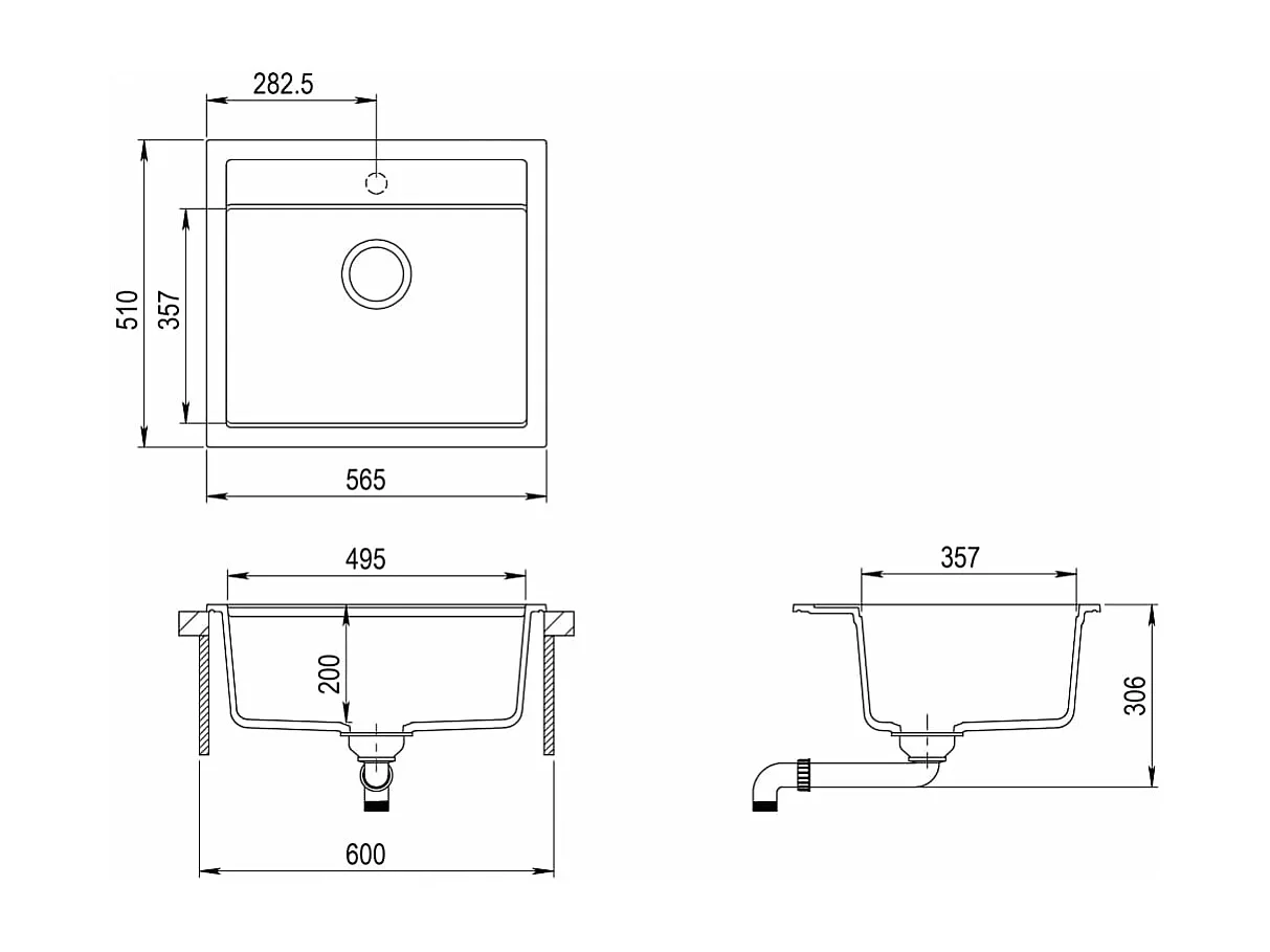 Evier de cuisine egouttoir blanche 56.5 x 30.6 x 51 cm 02_0002348