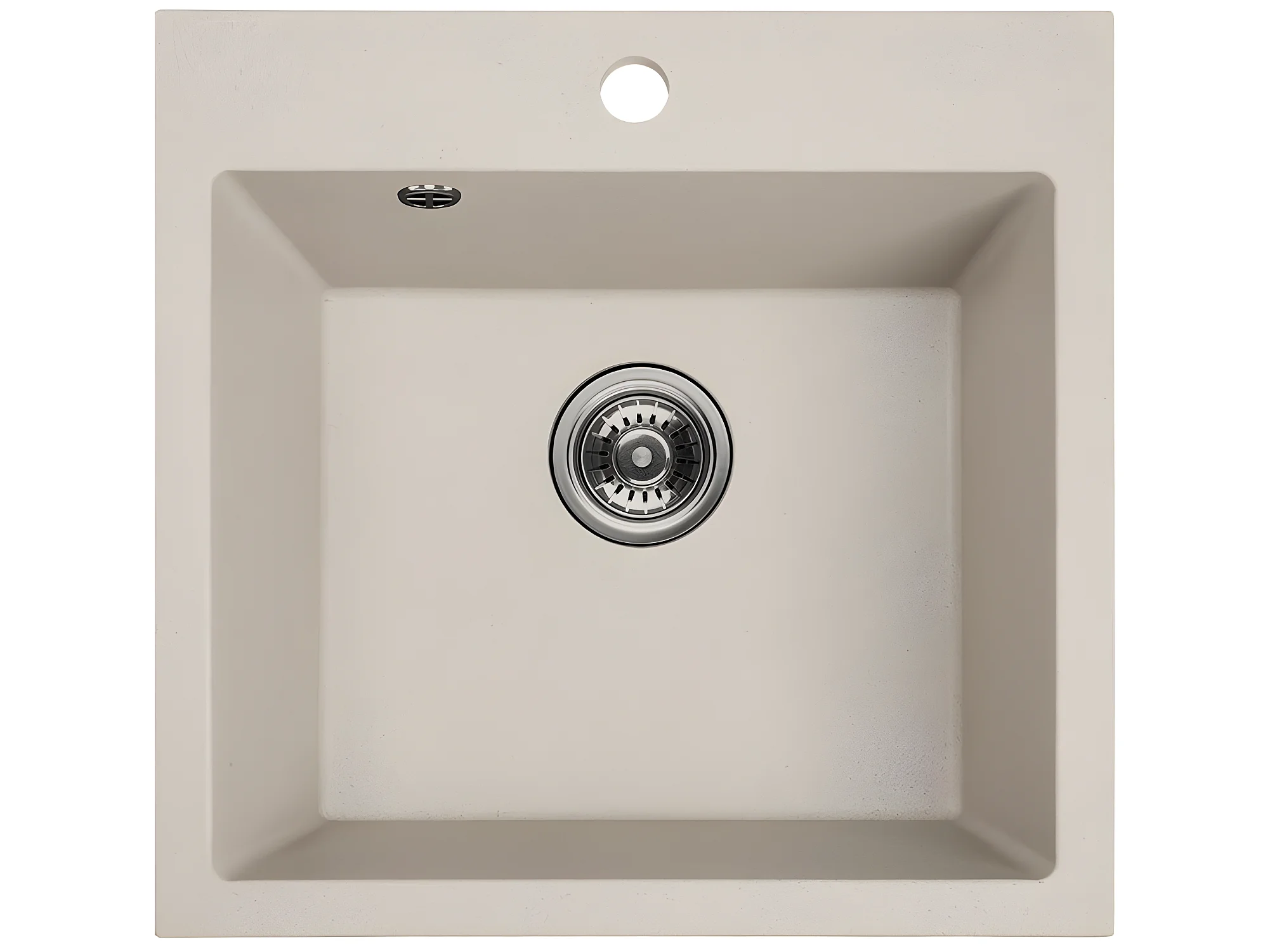 Evier de cuisine en granit beige, ALENA, 1 bac, 49x49