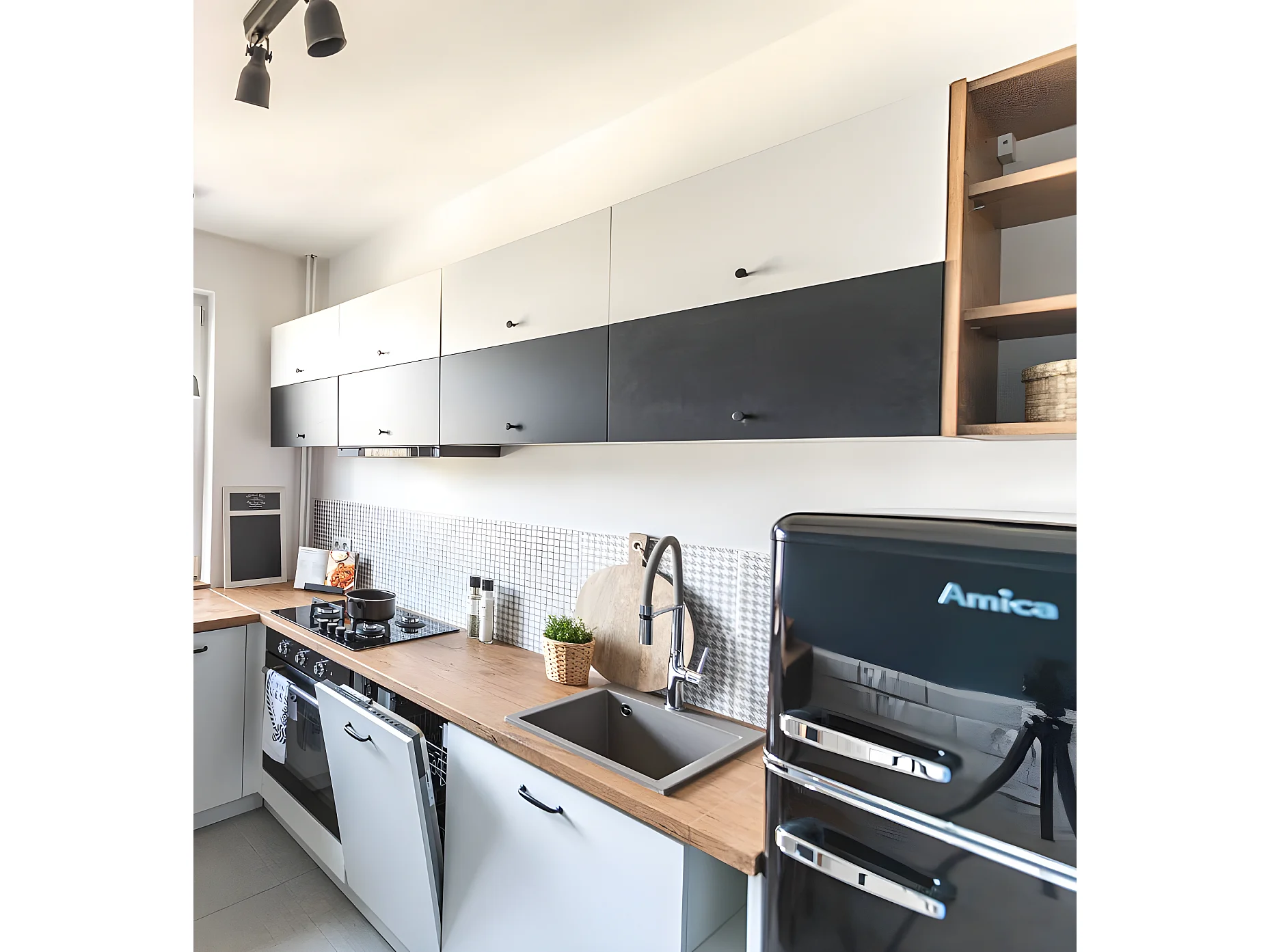 Evier de cuisine en granit gris CHICHI, 1 bac, 48x38