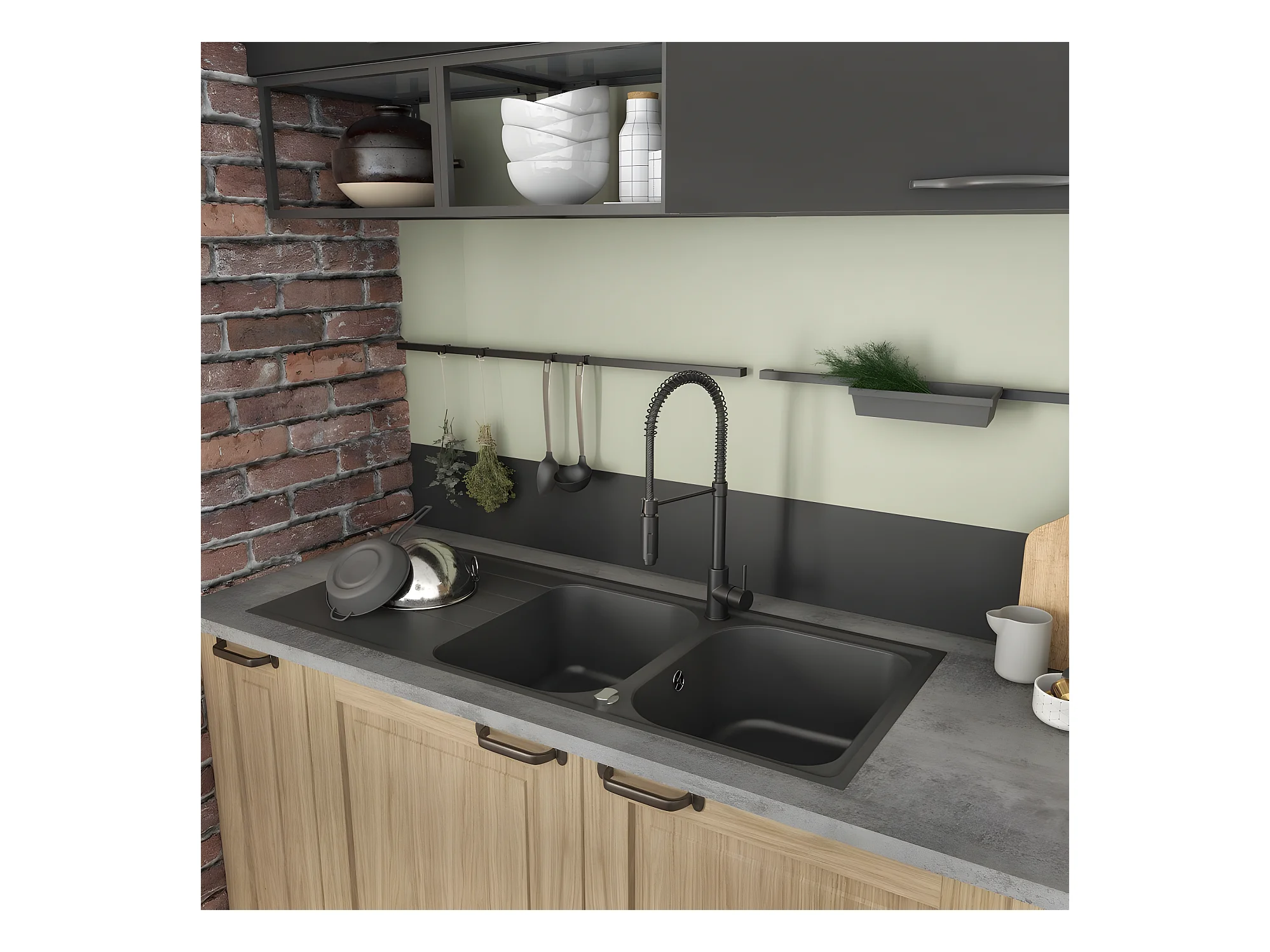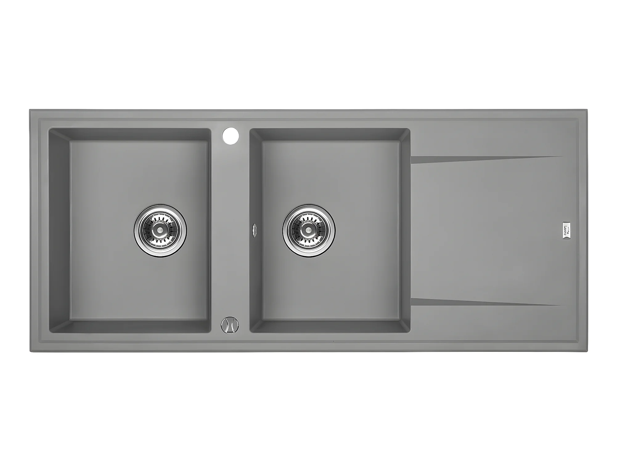 Evier de cuisine en granit gris - MEGALO - 50 x 116 cm, 2 bacs avec égouttoir