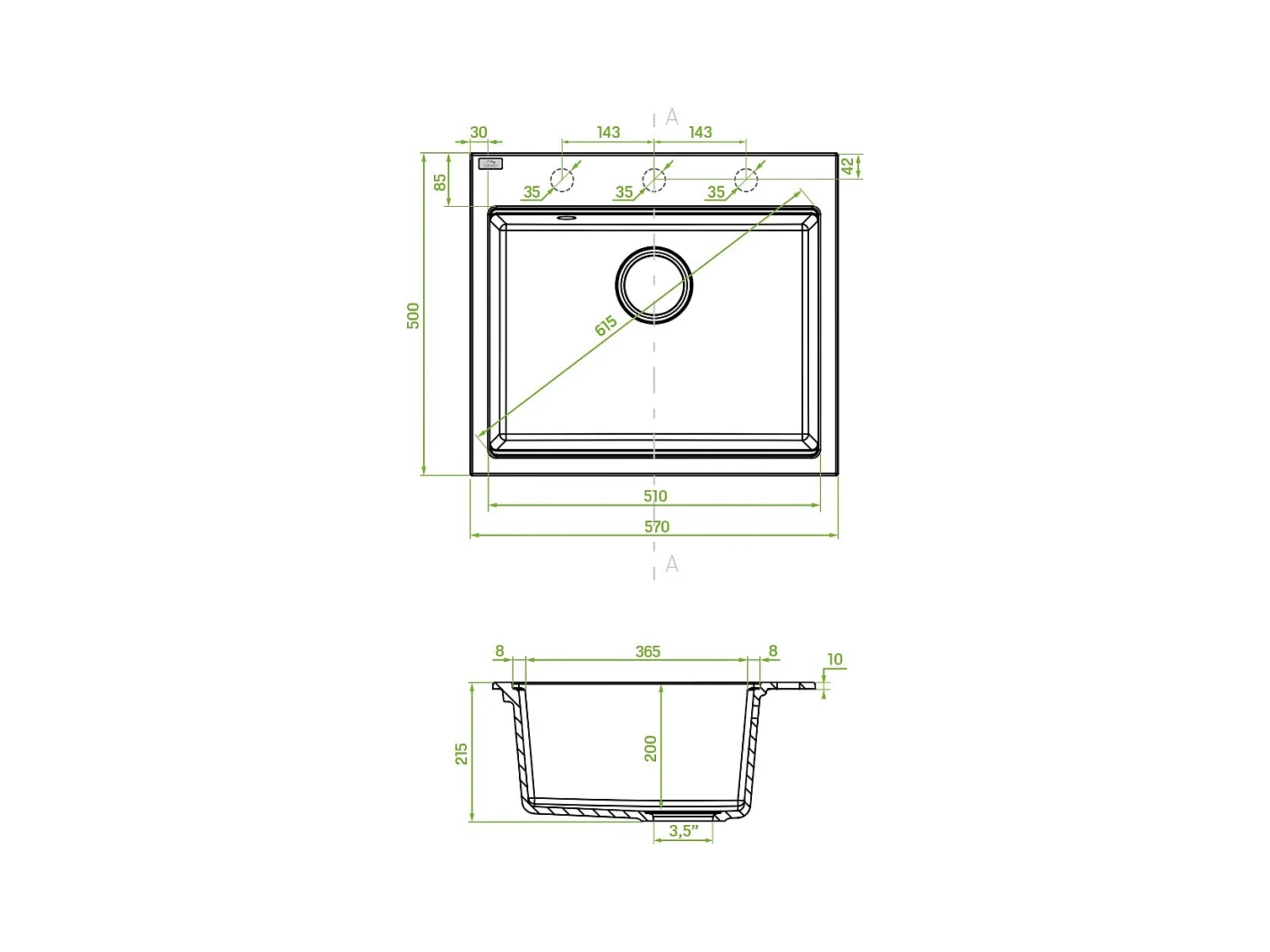 Evier de cuisine en granit gris - TAU - 50 x 57 cm, 1 bac