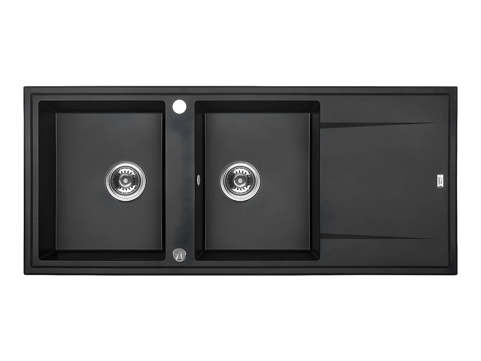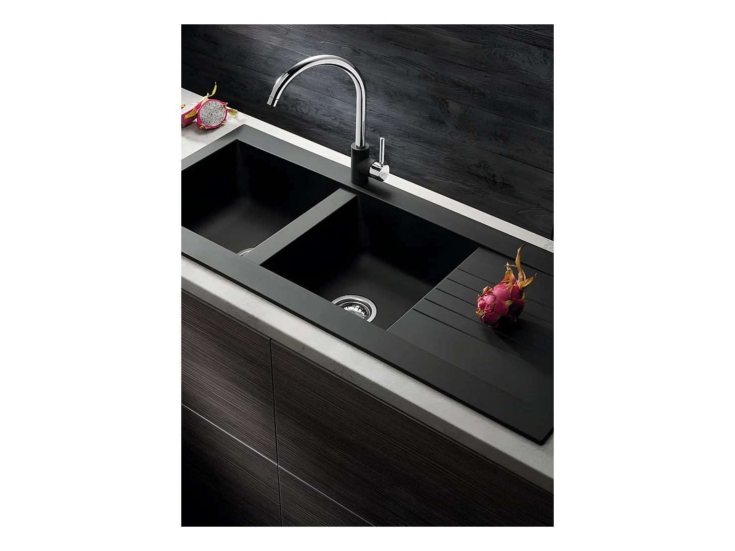 Evier de cuisine en granit noir - MEGALO - 50 x 116 cm, 2 bacs avec égouttoir