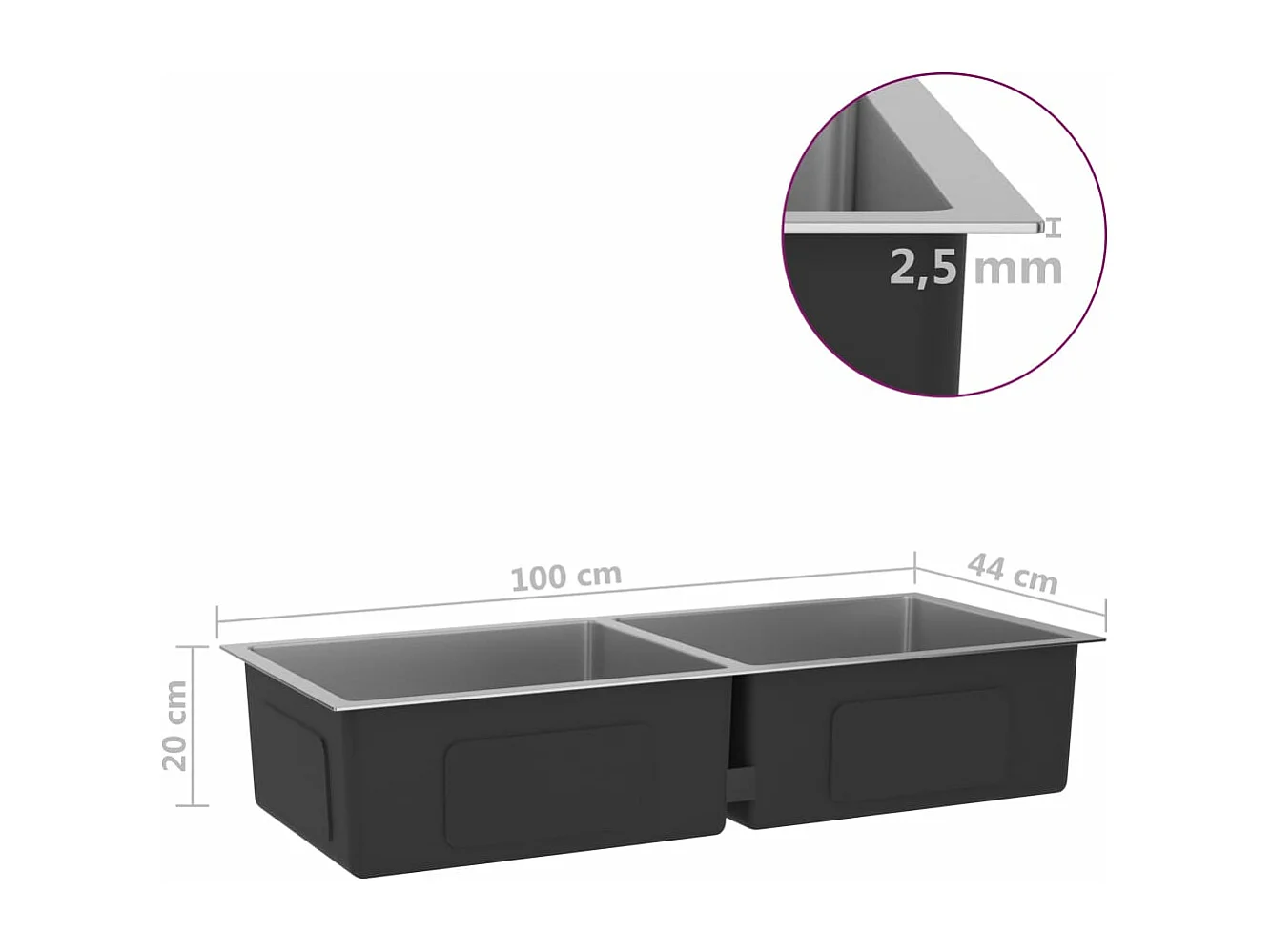 Évier de cuisine fait argenté 100 x 44 x 20 cm 02_0002473