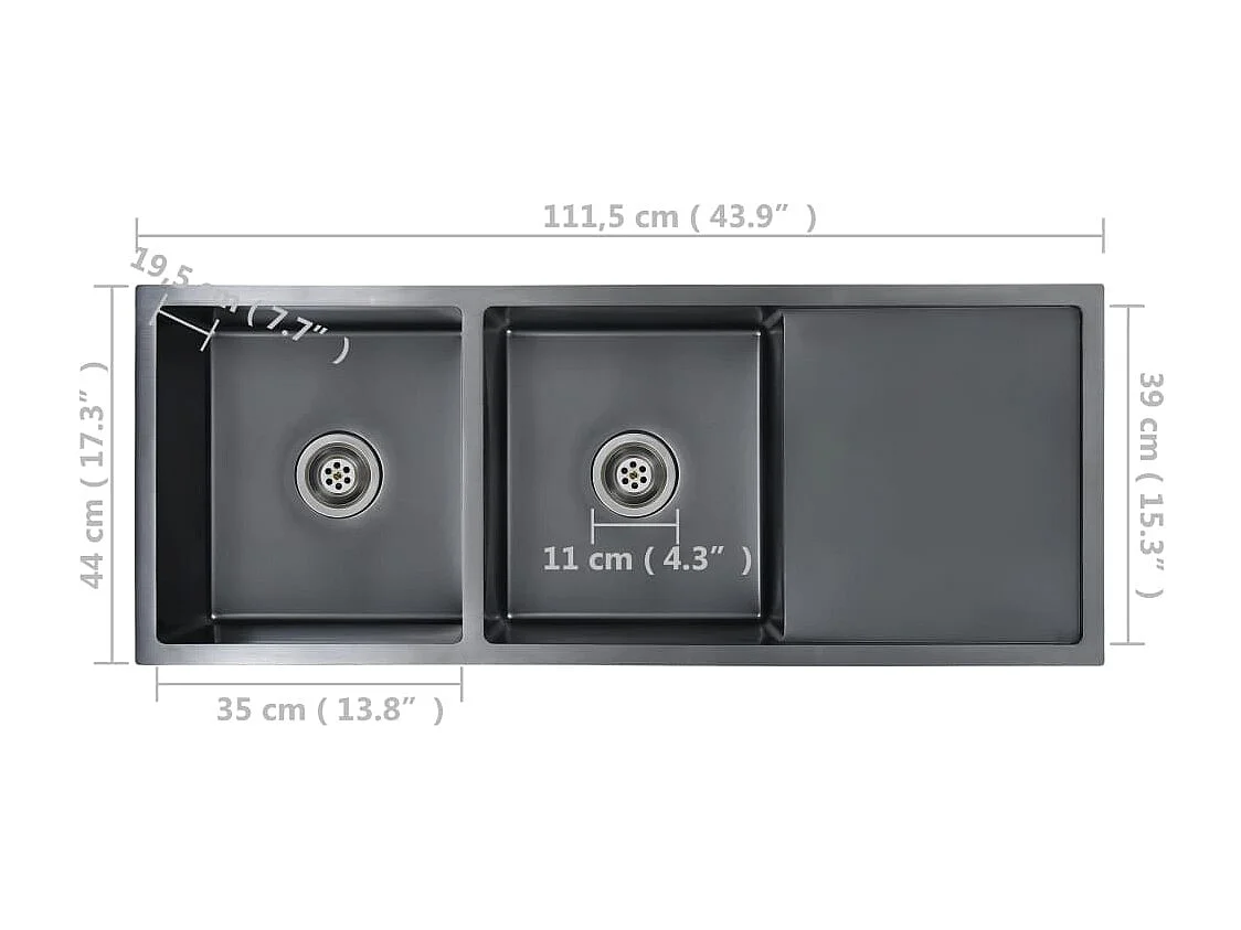 Évier de cuisine fait argenté 111.5 x 44 x 20 cm 02_0002372