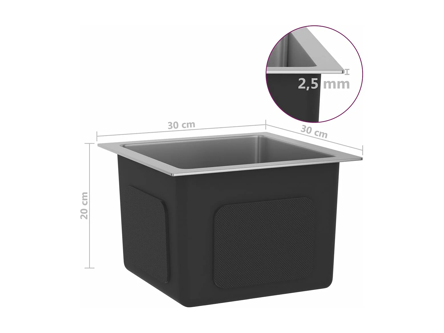 Evier de cuisine fait argenté 30 x 30 x 20 cm 02_0002450