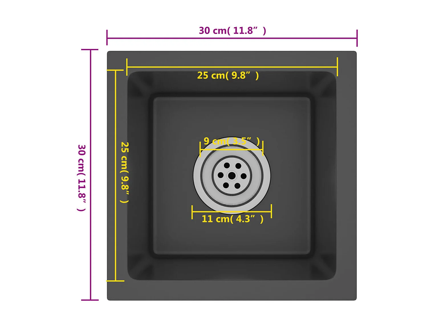 Evier de cuisine fait argenté 30 x 30 x 20 cm 02_0002450