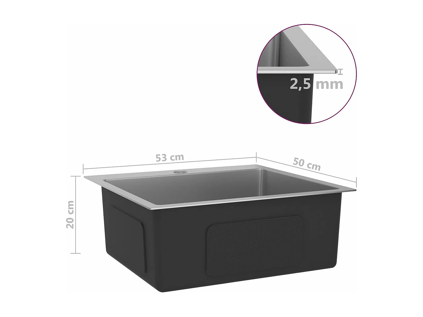 Évier de cuisine fait argenté 53 x 50 x 20 cm 02_0002460