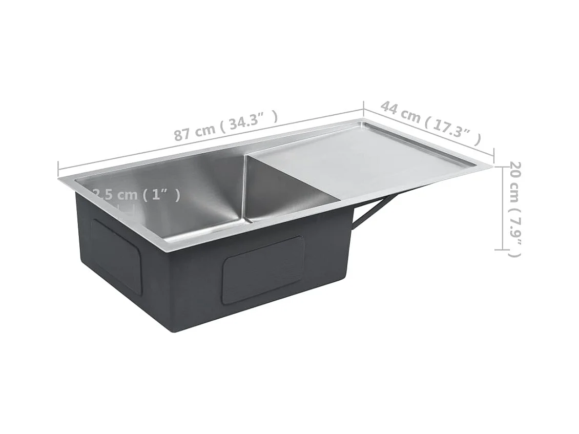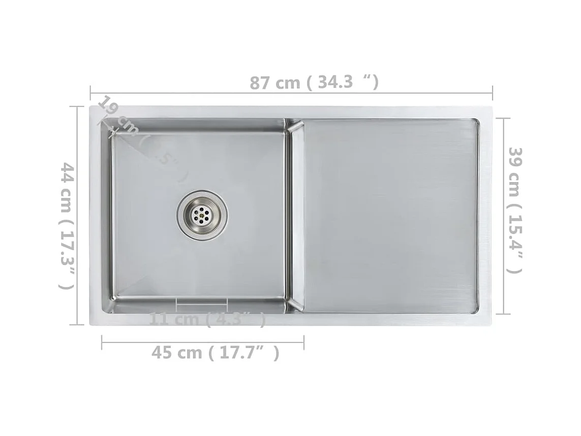 Évier de cuisine fait argenté 87 x 44 x 20 cm 02_0004384