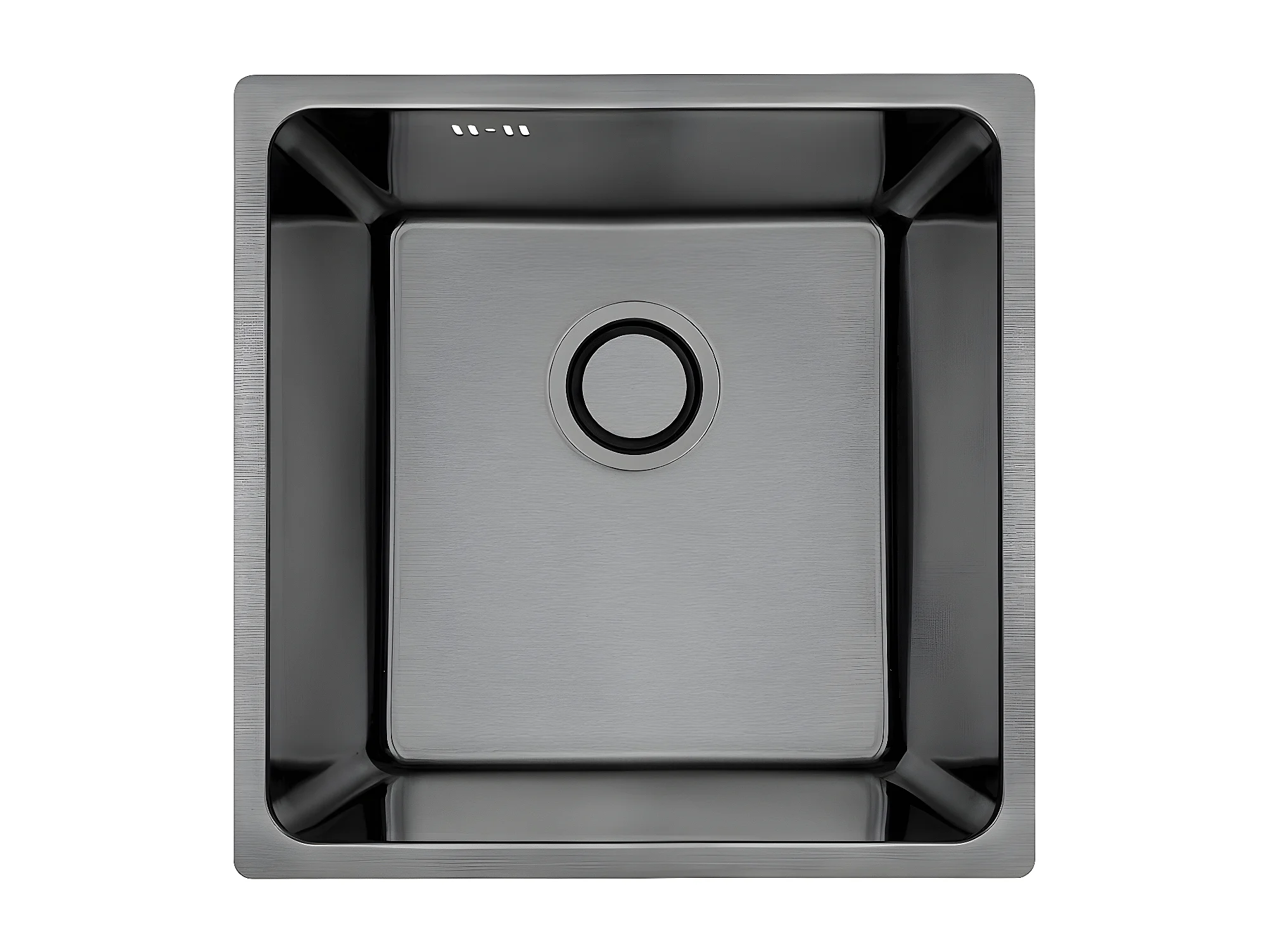 Evier de cuisine graphite ADEN, 1 bac, acier inoxydable, 44x44