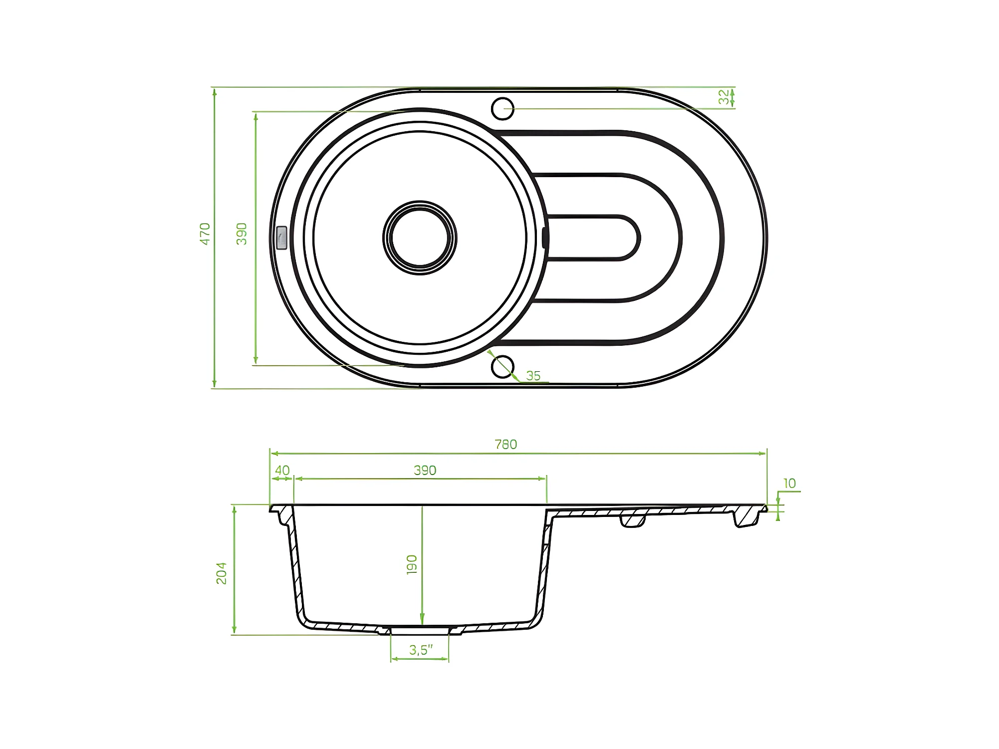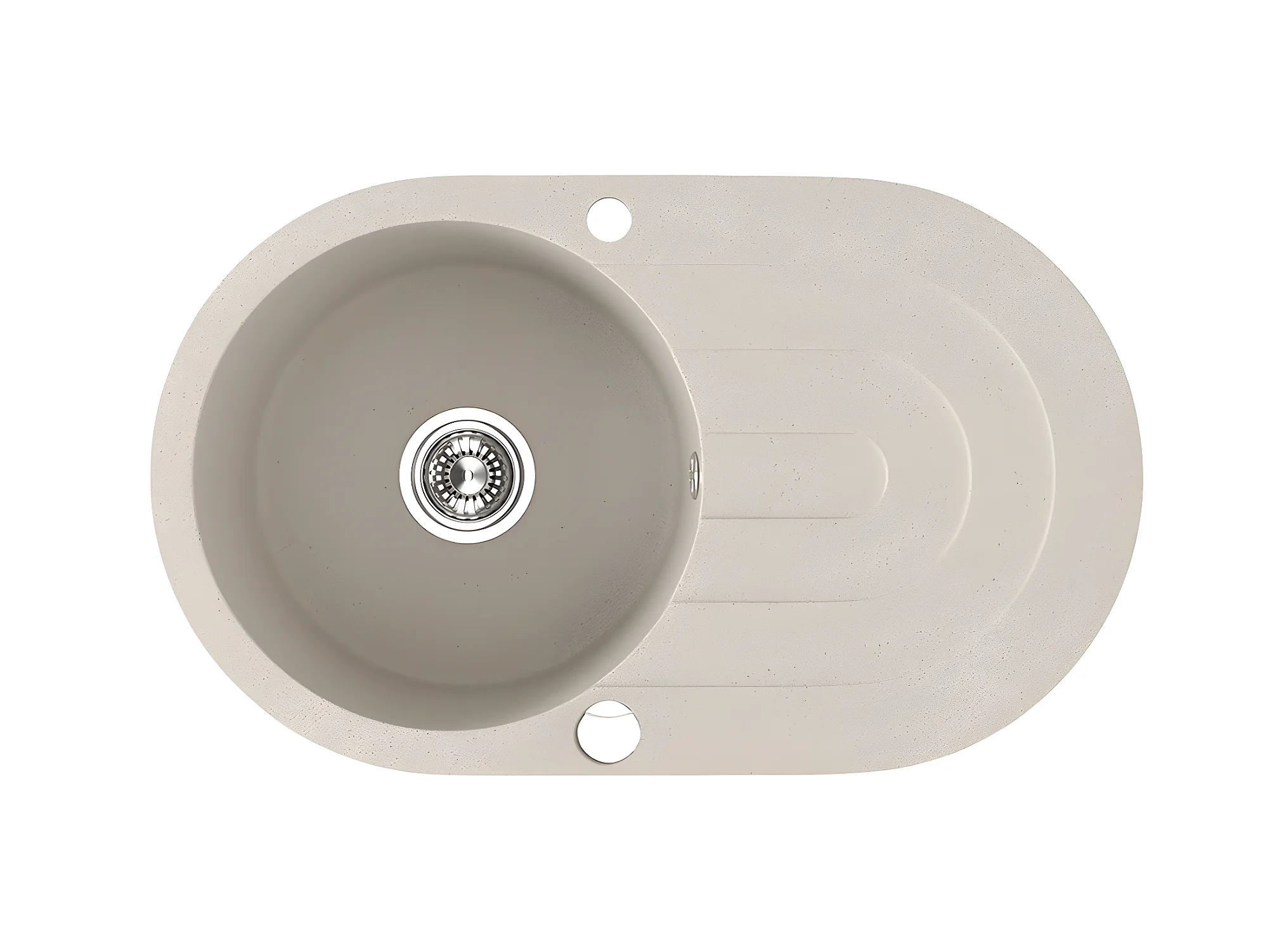 Evier de cuisine rond en granit beige DAFNE, 1 bac avec égouttoir, 47x78