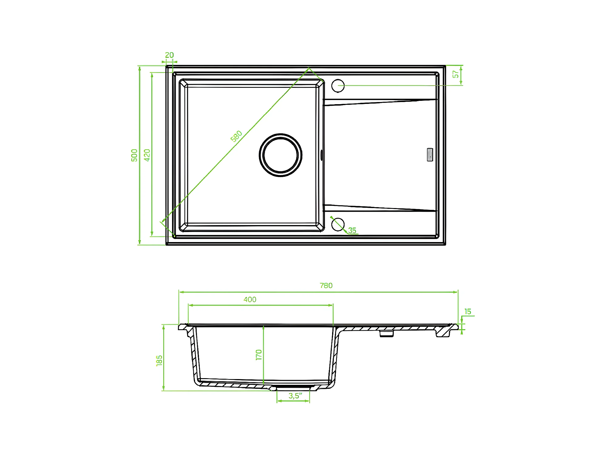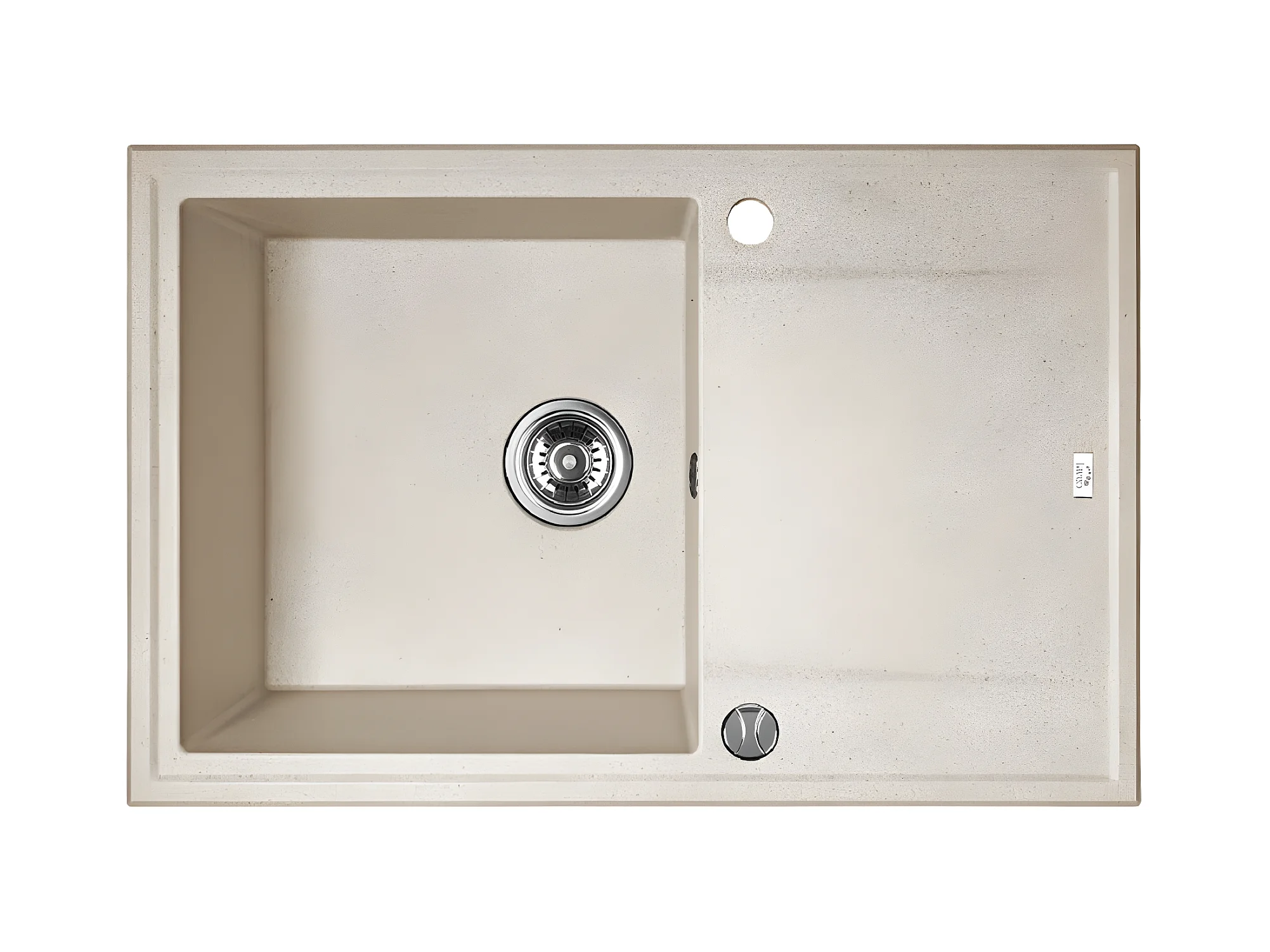 Evier de cuisine rond en granit beige MEGALO, 1 bac avec égouttoir,50x75