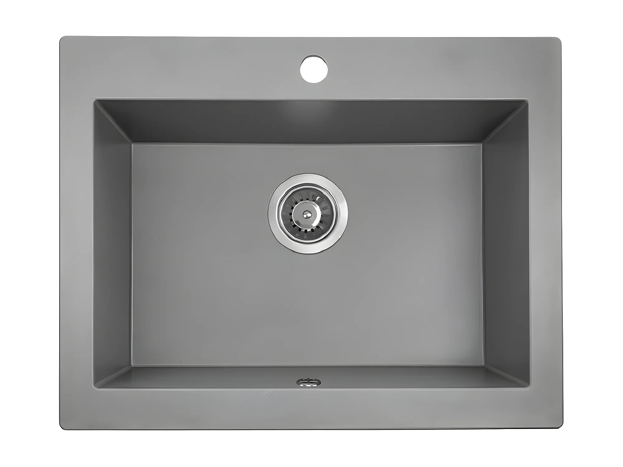 Evier de cuisine rond en granit gris KOMODO, 1 bac,49x58