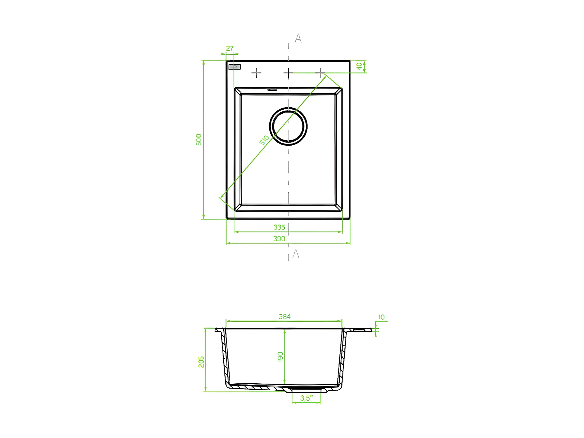 Evier de cuisine rond en granit gris MONCHICHI, 1 bac,50x39
