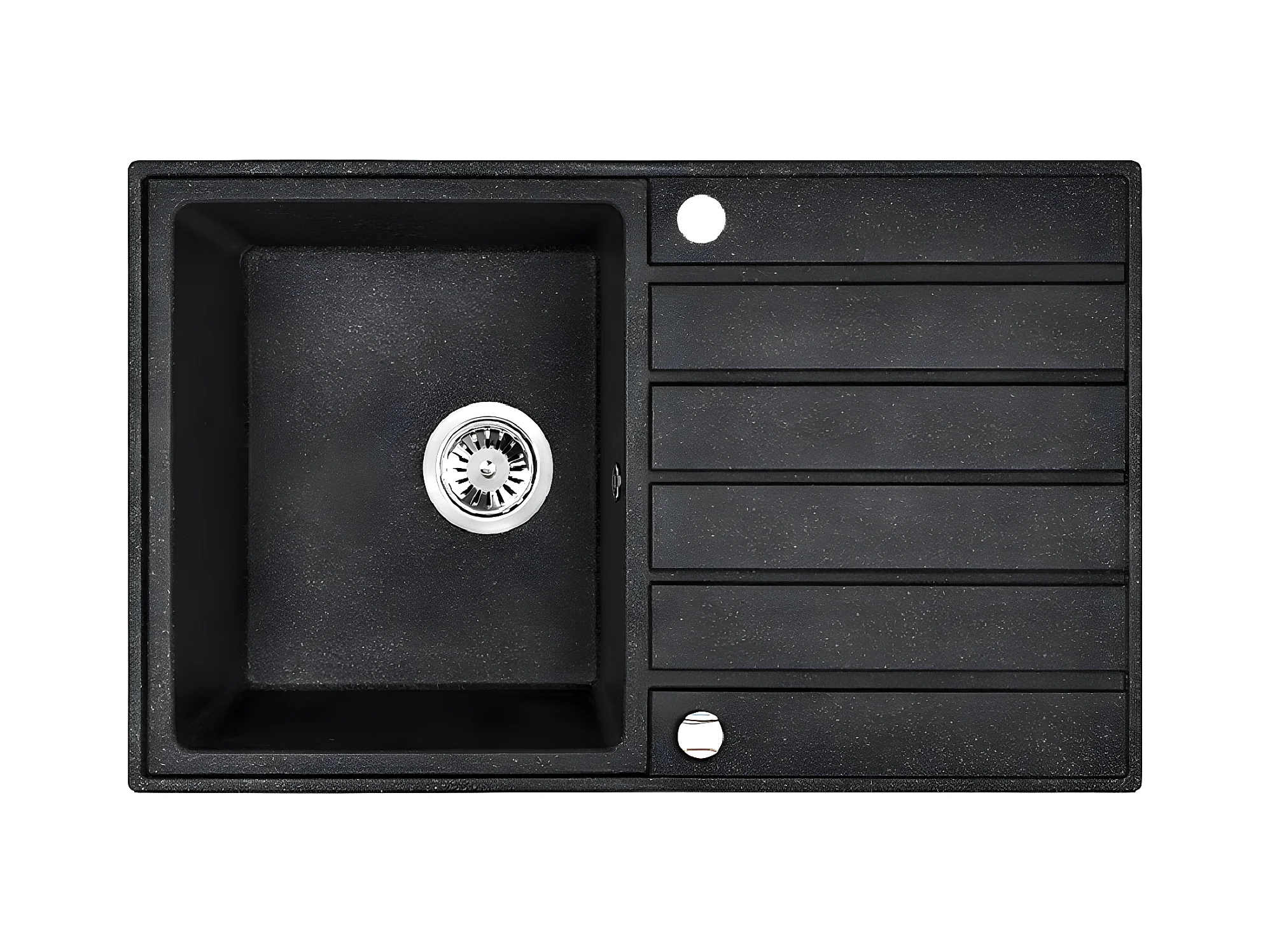 Evier de cuisine rond en granit noir MARGARITA, 1 bac avec égouttoir,49x79