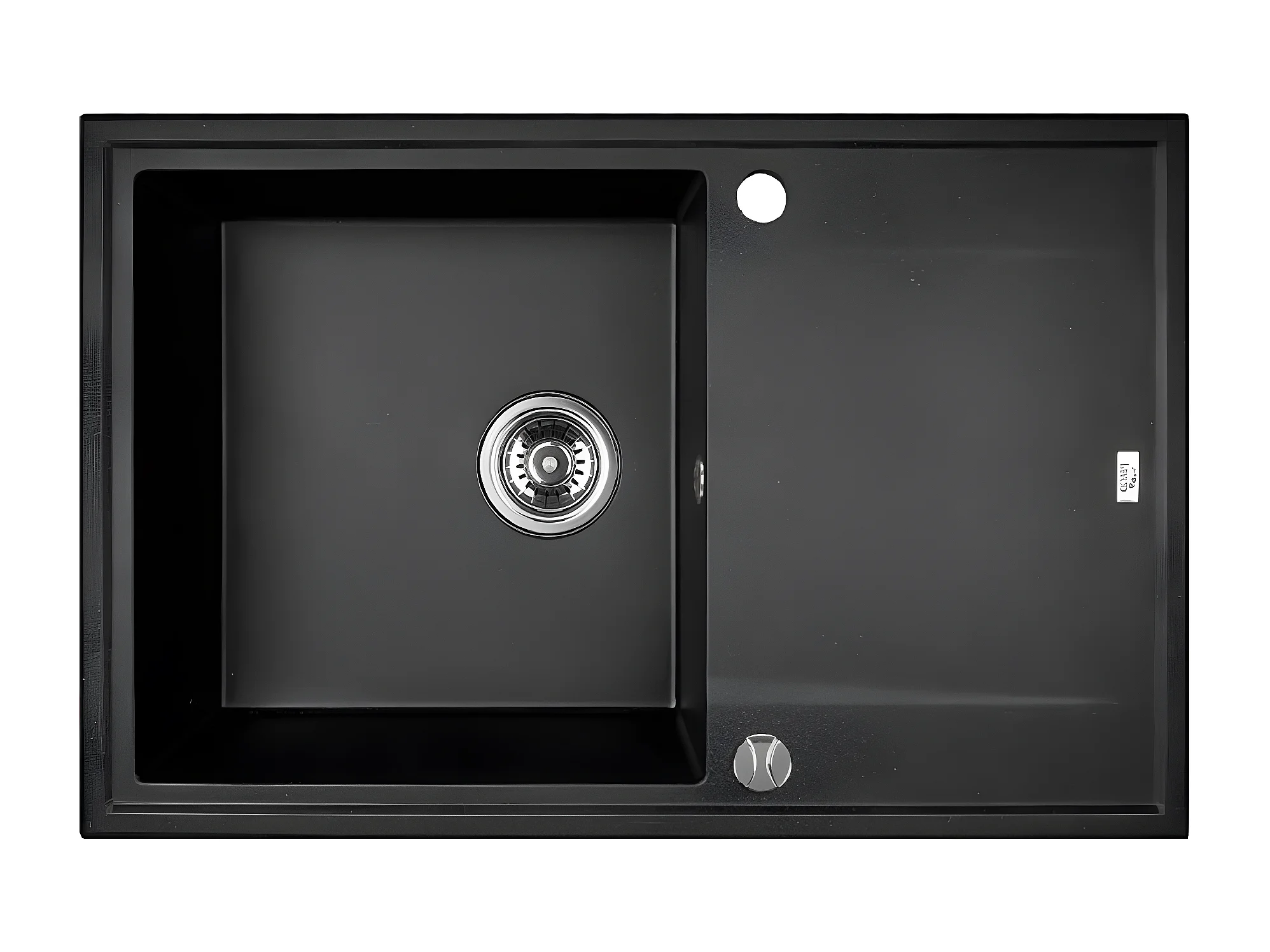 Evier de cuisine rond en granit noir MEGALO, 1 bac avec égouttoir,50x75