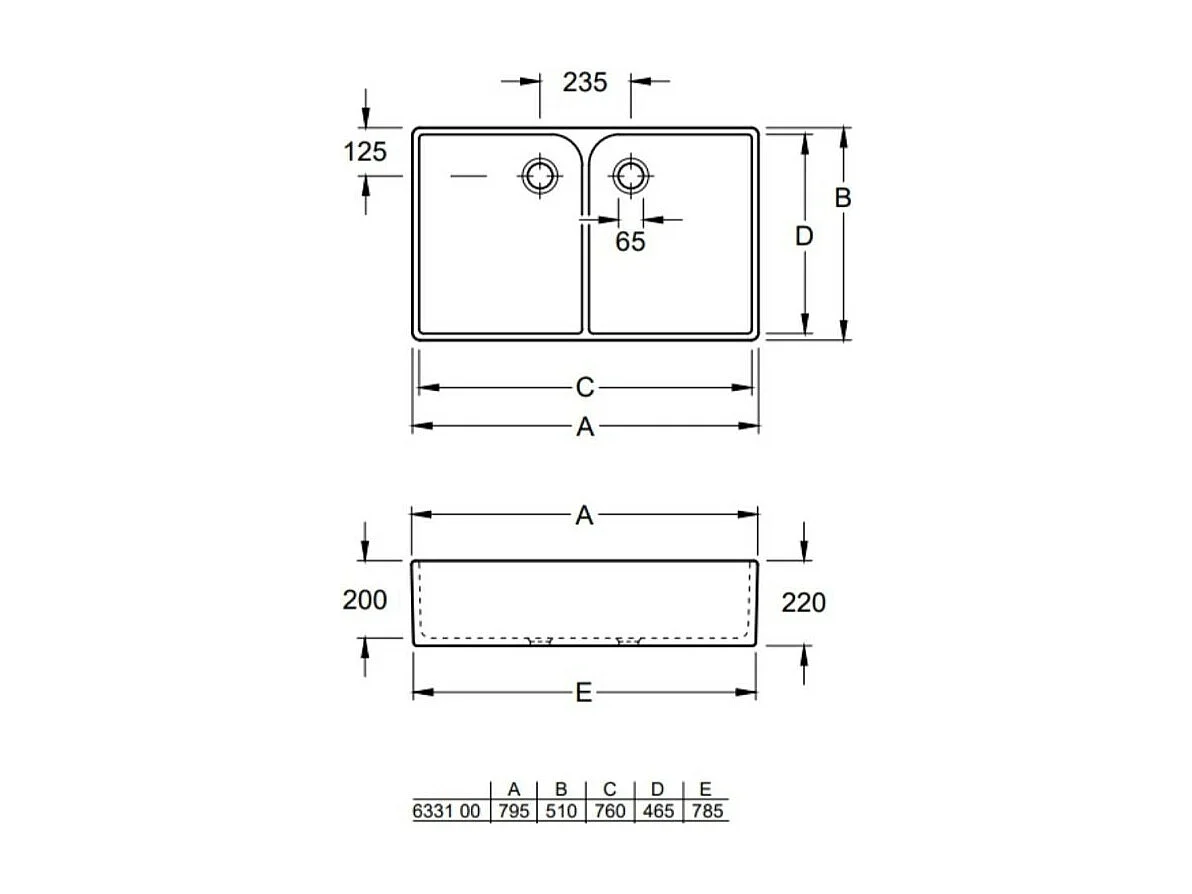 Evier 2 bacs blanc VILLEROY ET BOCH O Novo 22 x 79,5 x 51 cm avec trop-plein