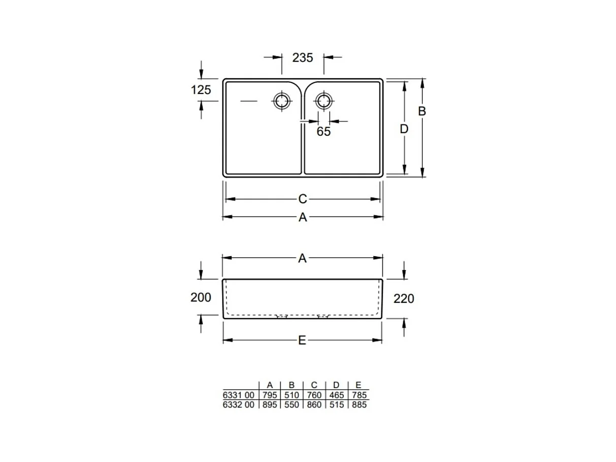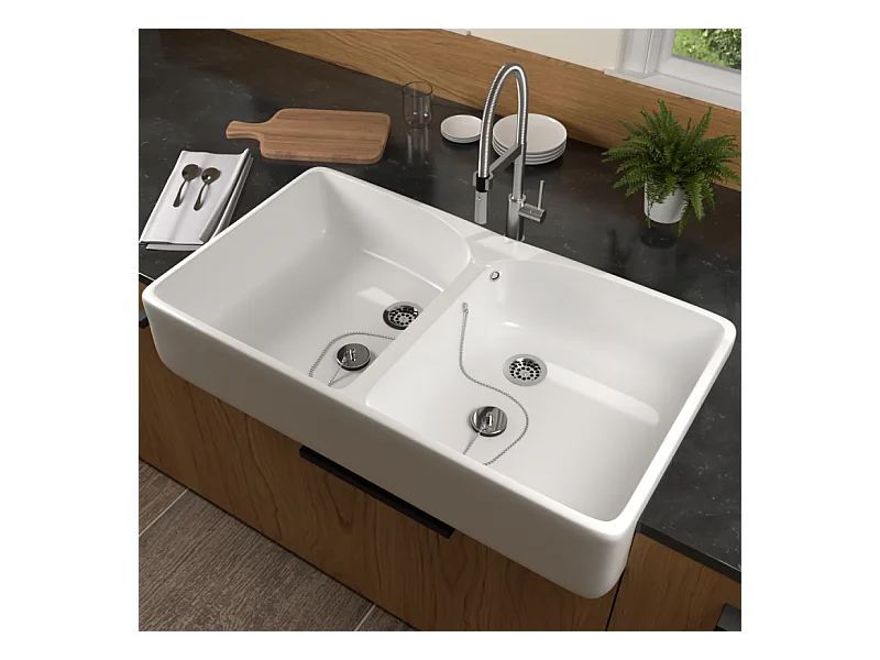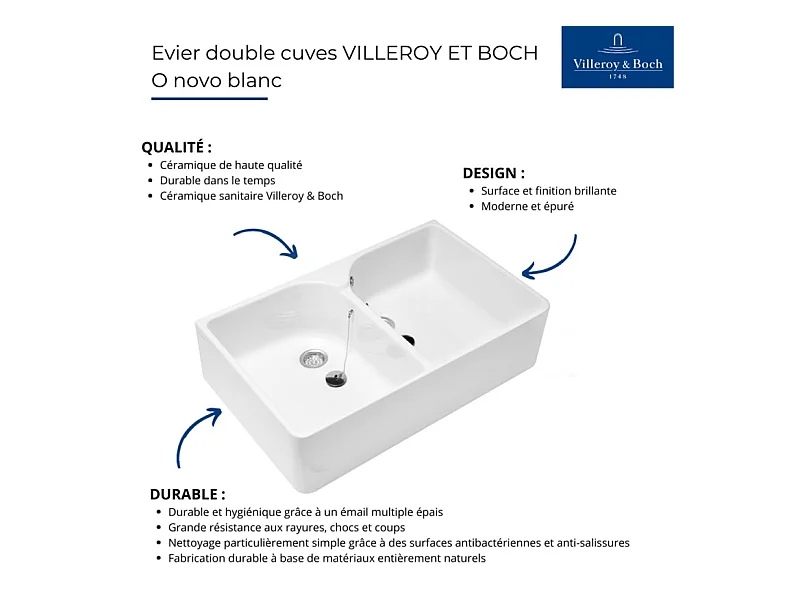 Evier 2 bacs blanc VILEROY ET BOCH O Novo 220 x 895 x 550 mm avec trop-plein