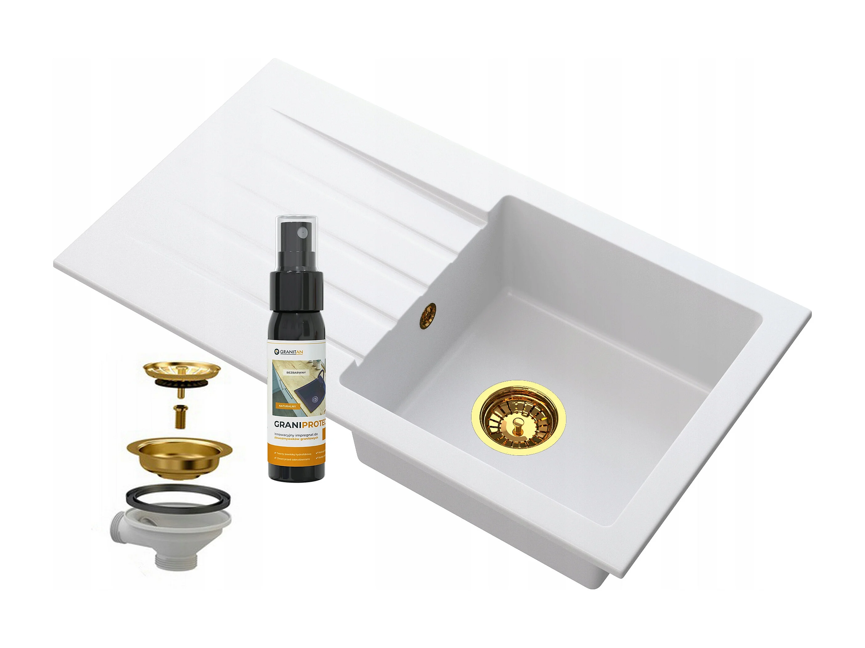 ÉVIER EN GRANIT AVEC ÉGOUTTOIR SIPHON OR