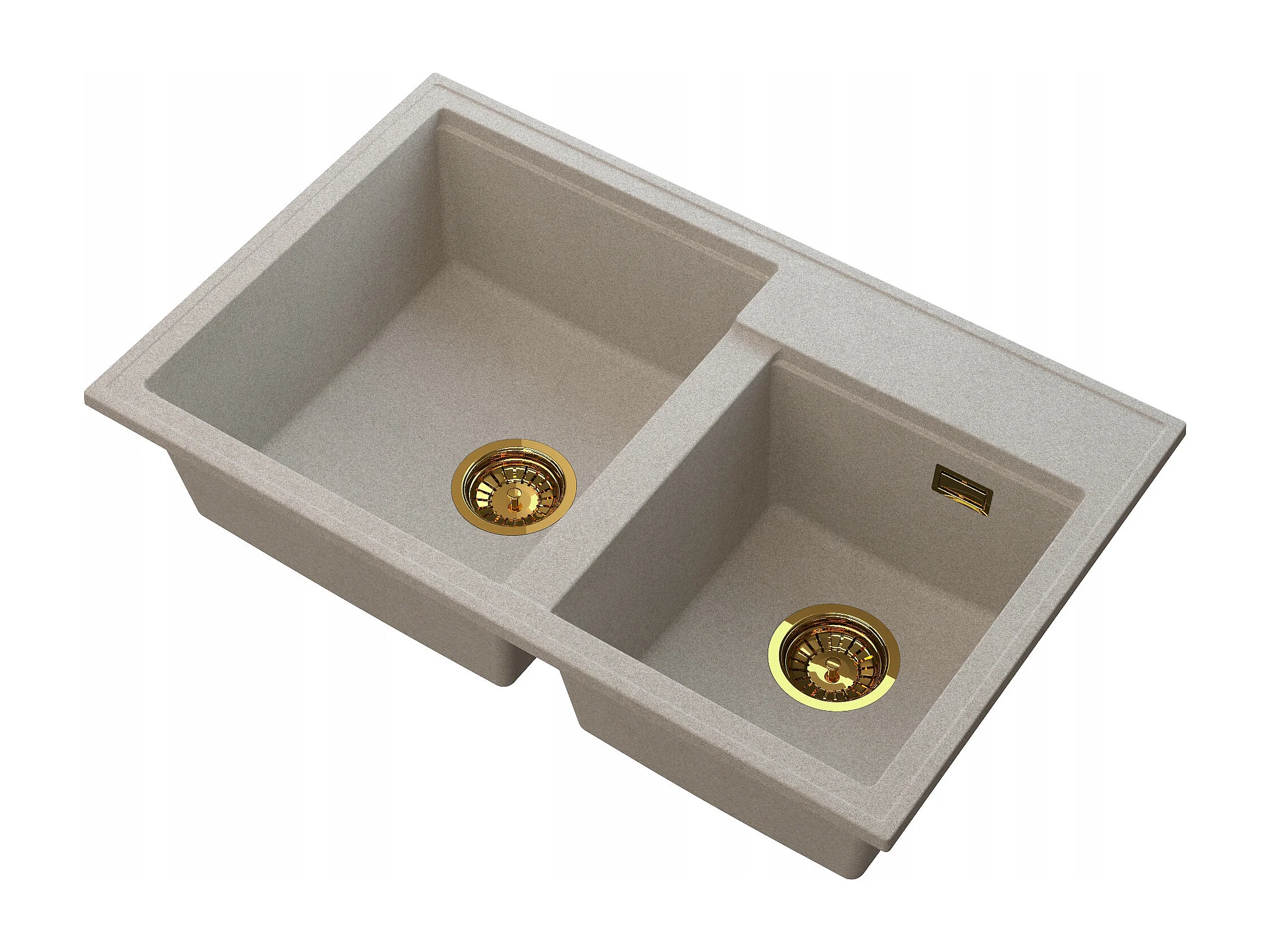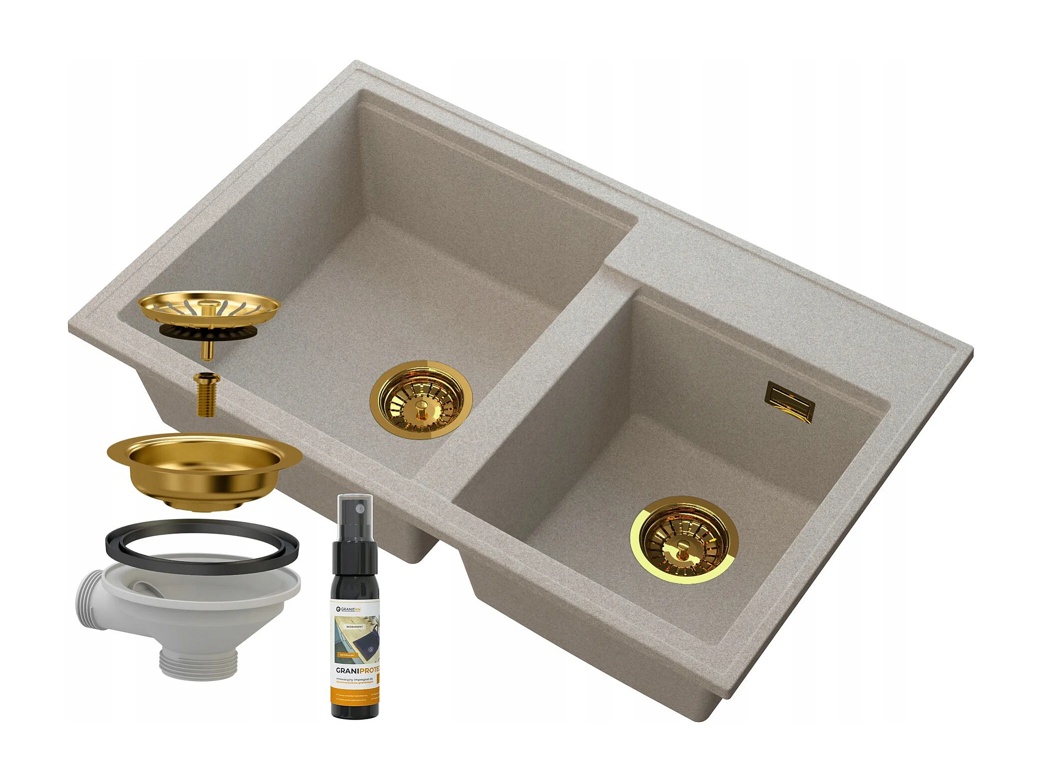 ÉVIER EN GRANIT BEIGE 2 COMPARTIMENTS SIPHON GOLDEN HECTOR