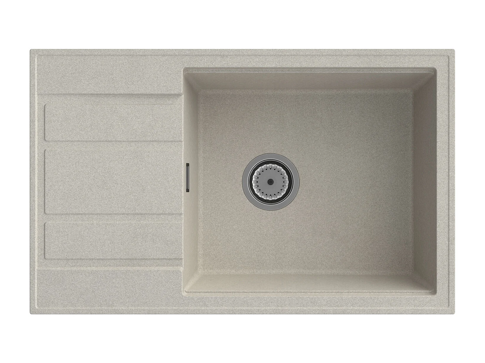 ÉVIER EN GRANIT BEIGE ROBINET SIPHON LOUIS CHROMÉ