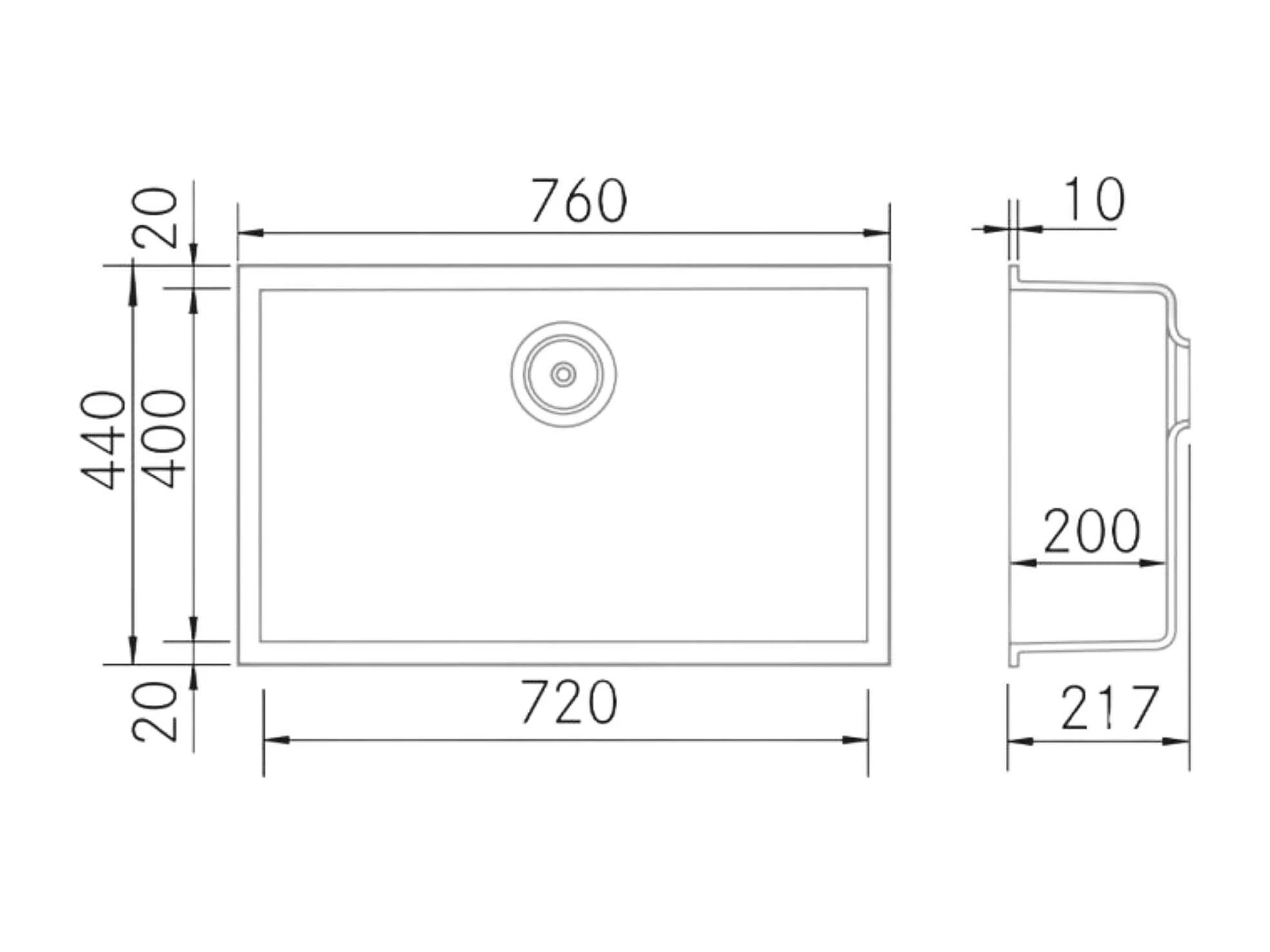 Évier sous-plan 1 Cuve 72x40x20cm R5mm - Quartz Noir Mat - Kera BE FRÉCAN