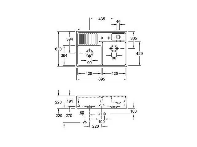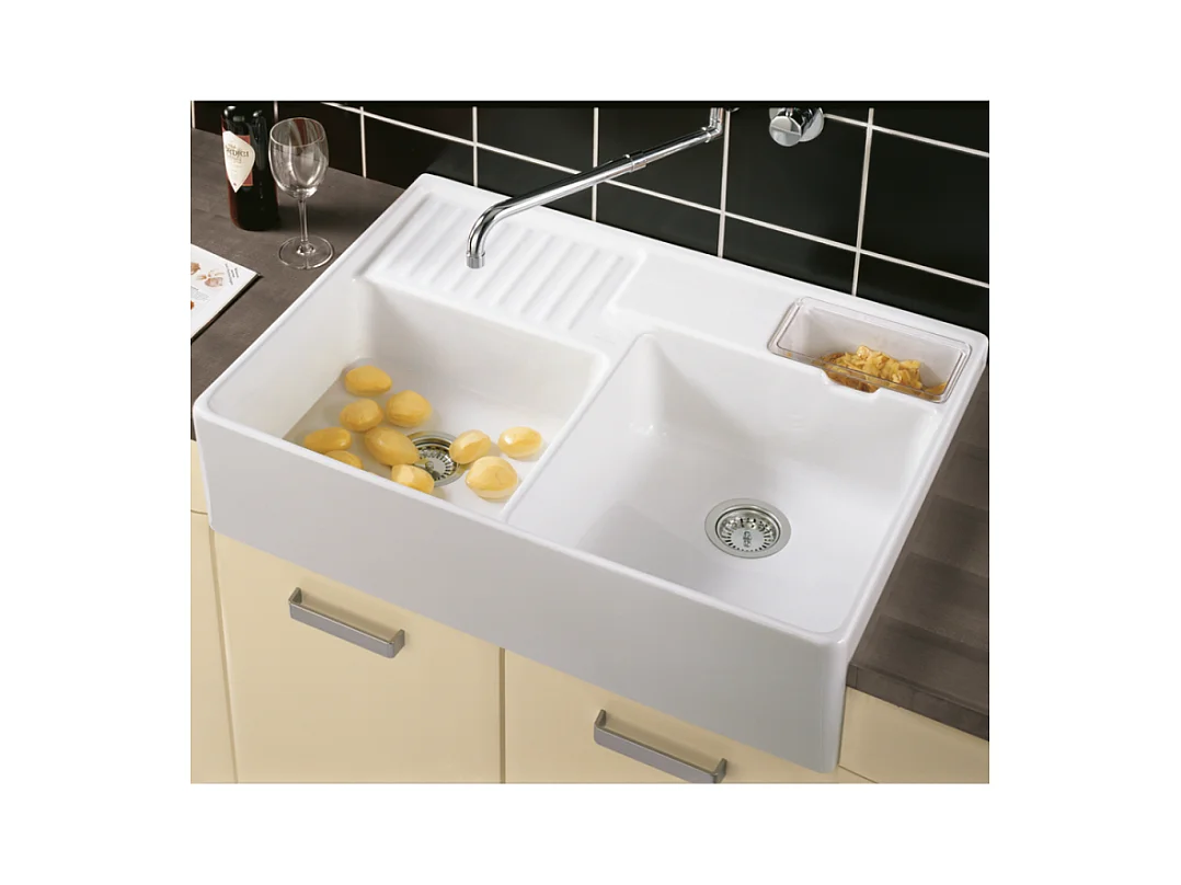 Evier timbre d'office VILLEROY ET BOCH Tradition 2 bacs 89,5 x 63 céramique vidage manuel blanc + Egouttoir déroulable