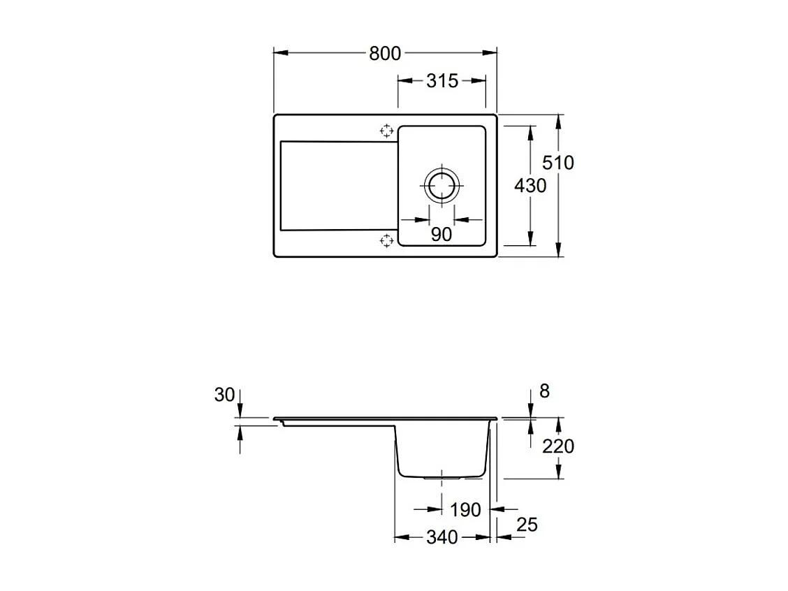 Evier une cuve avec égouttoir rectangle VILEROY ET BOCH Siluet 45 blanc alpin 800x510mm