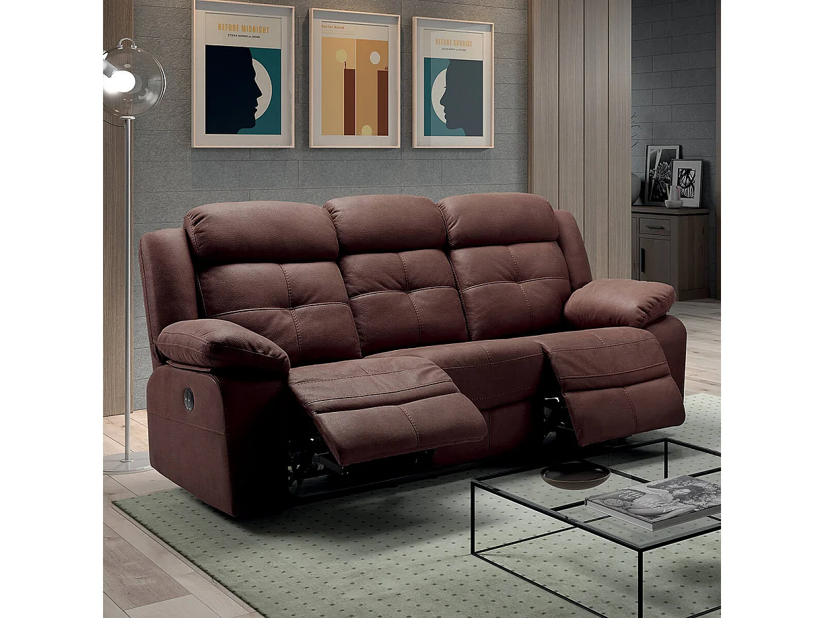 FABARES - Canapé Relax Electrique 3 Places Chocolat