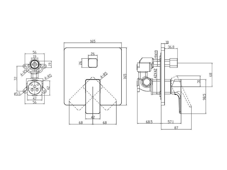 Façade mécanique avec inverseur VILLEROY ET BOCH Subway 3.0 Chrome + corps encastré