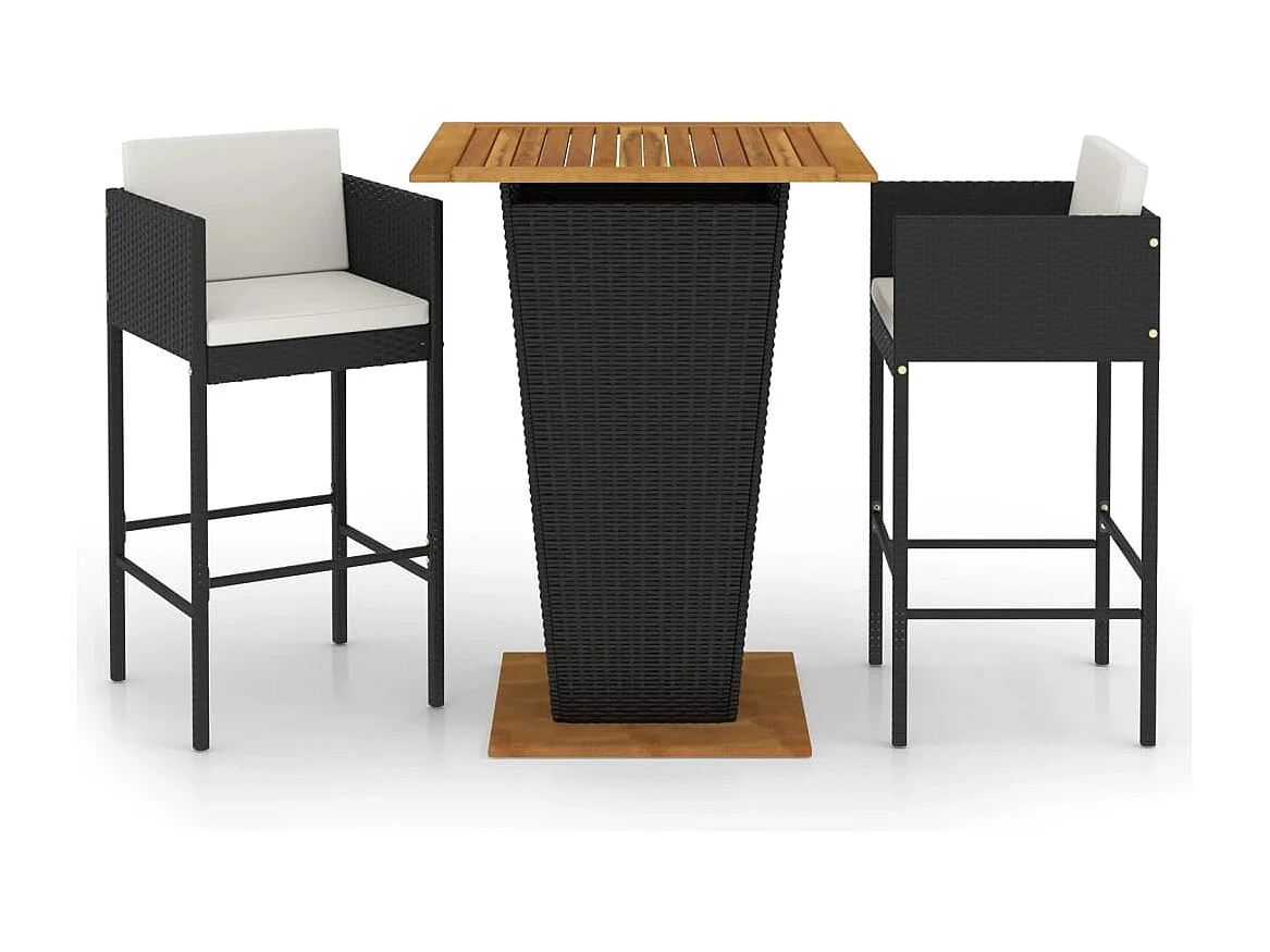 Fairlawn Ensemble de bar de jardin 3 pcs et coussins Résine tressée Noir