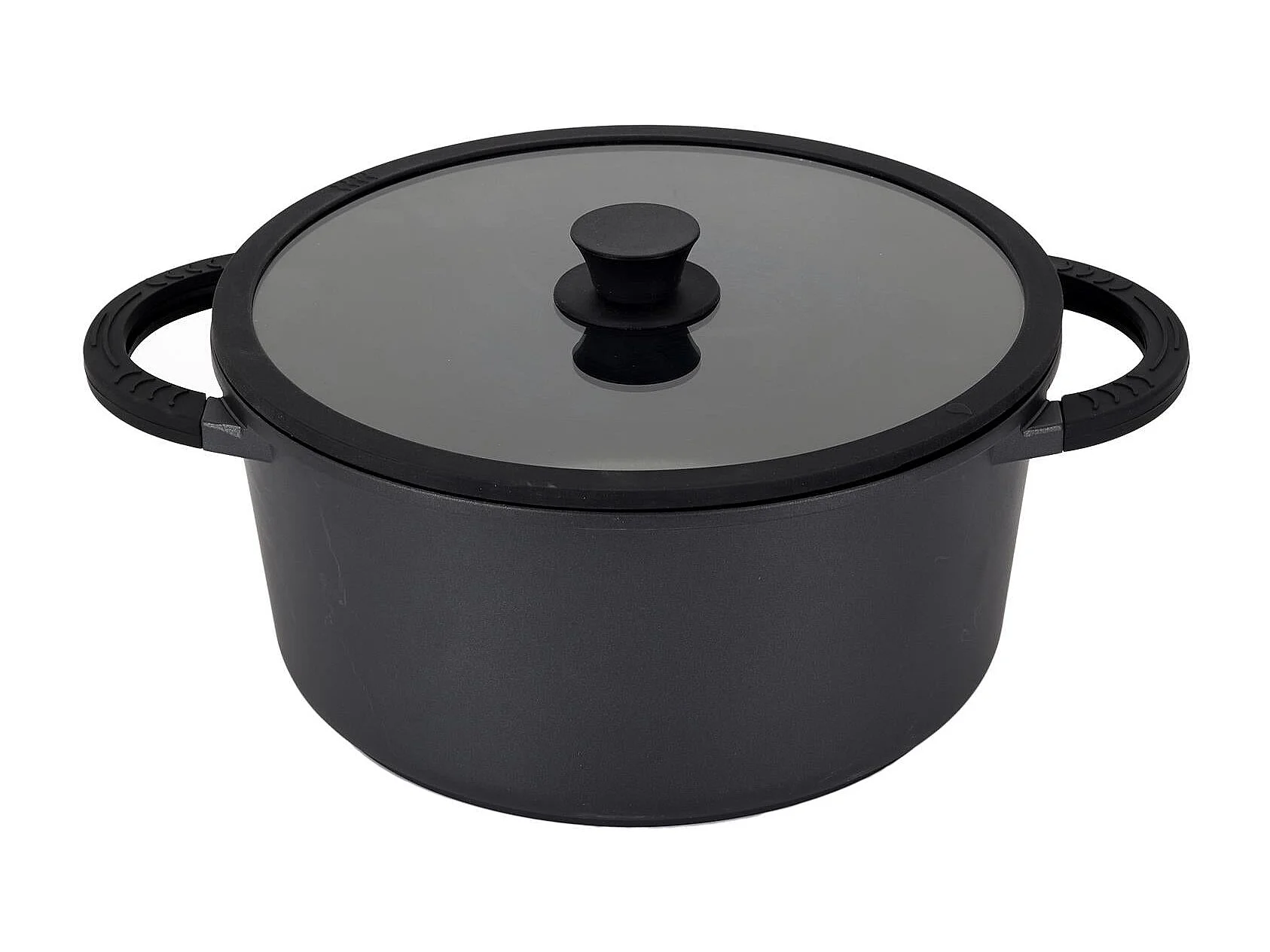 Faitout bas 32 cm en fonte d'aluminium couvercle en verre