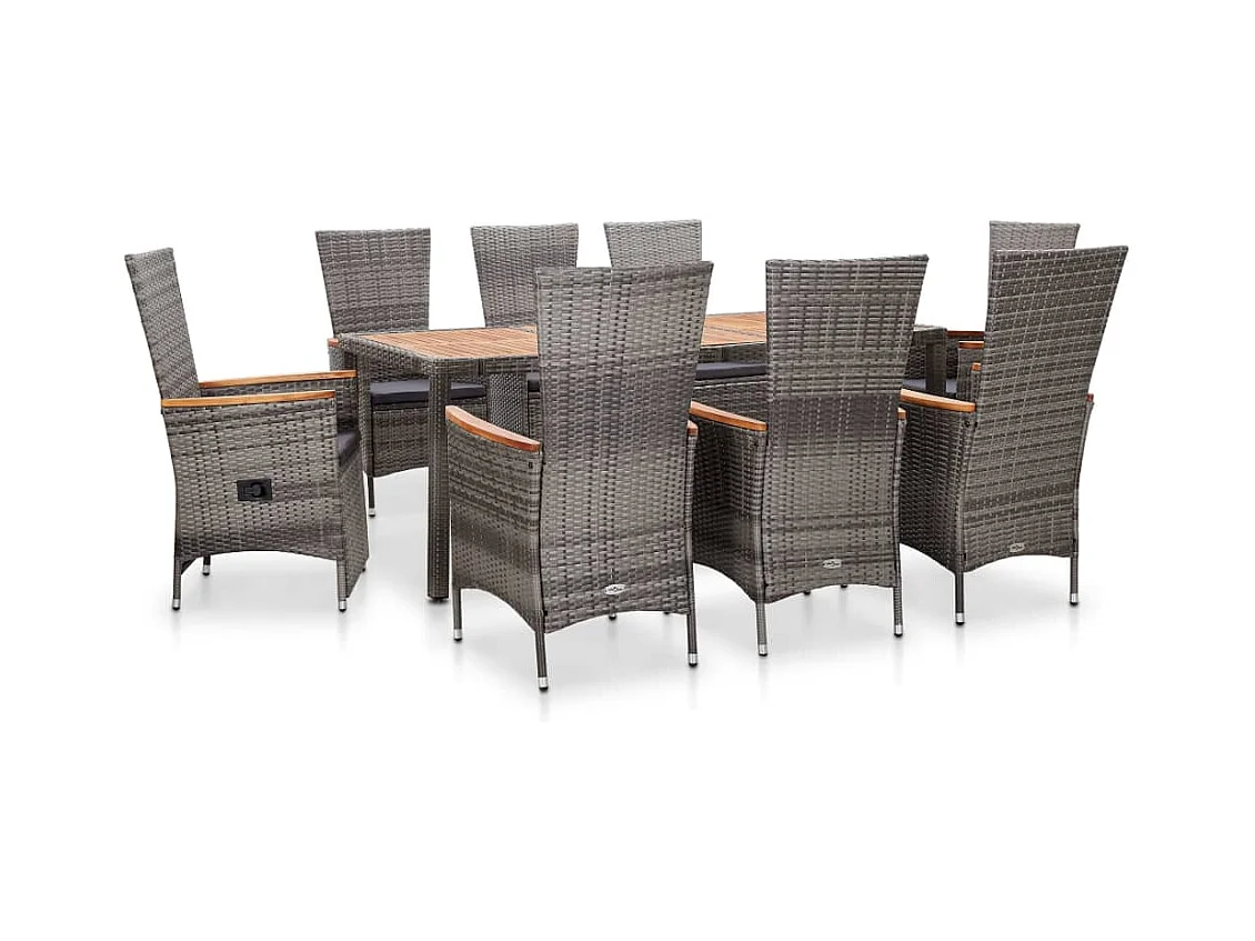 Farina Ensemble à manger d'extérieur 9pcs coussins Résine tressée Gris