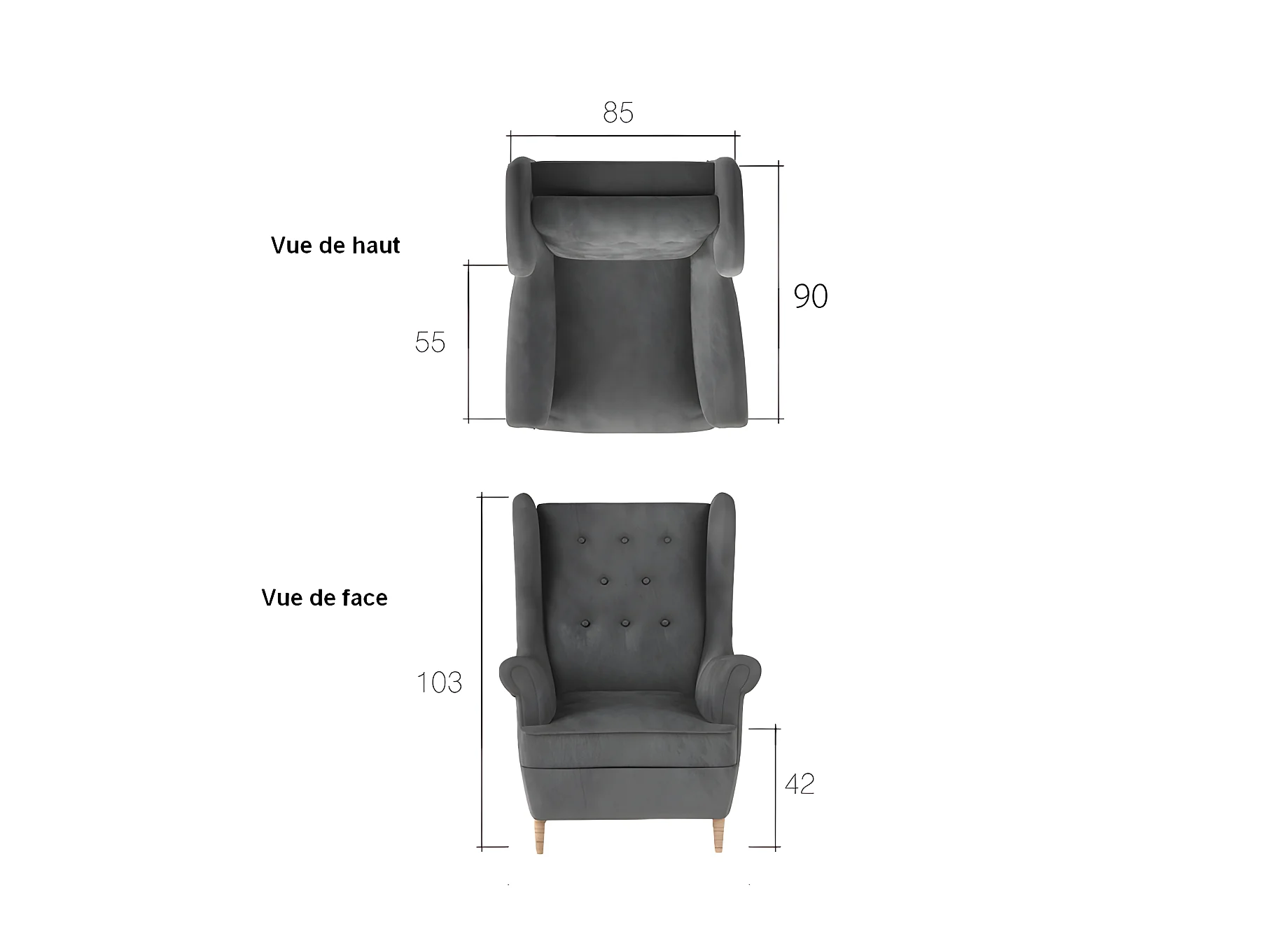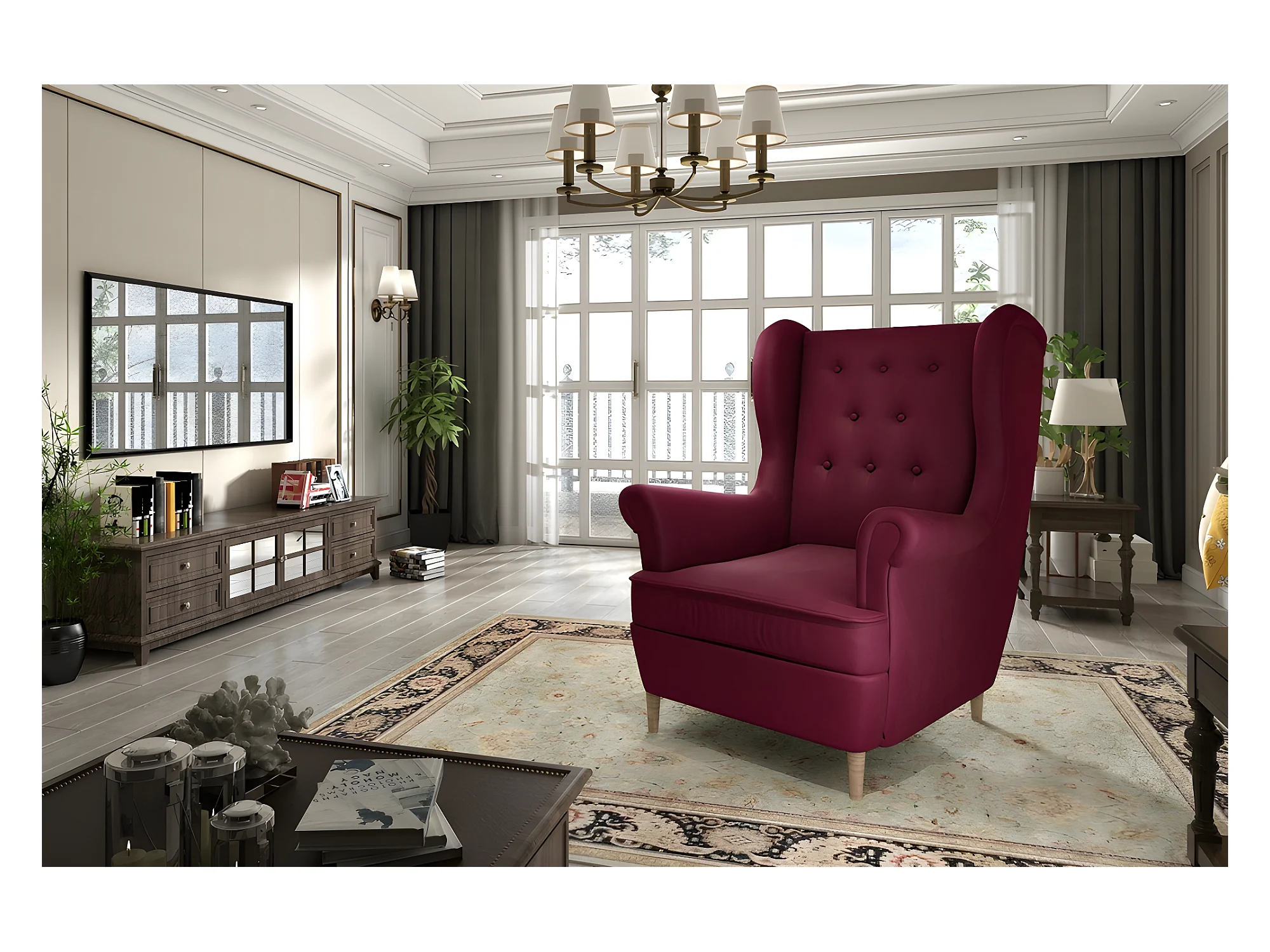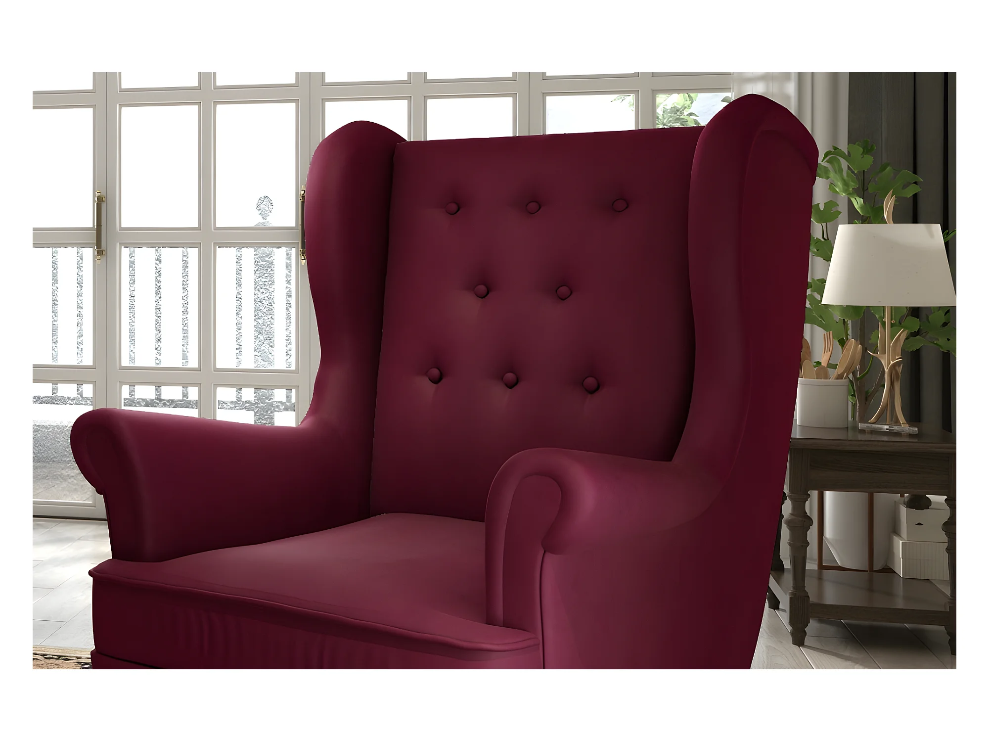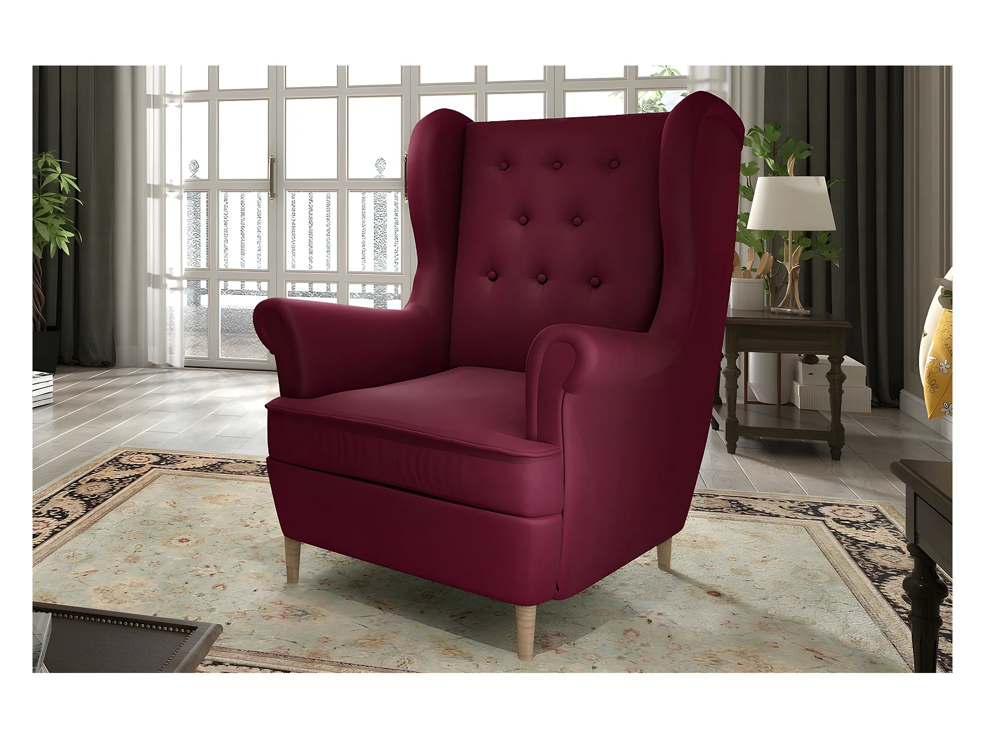 Fauteuil 1 place en tissu velours catégorie luxe, bordeaux, ARNAUD