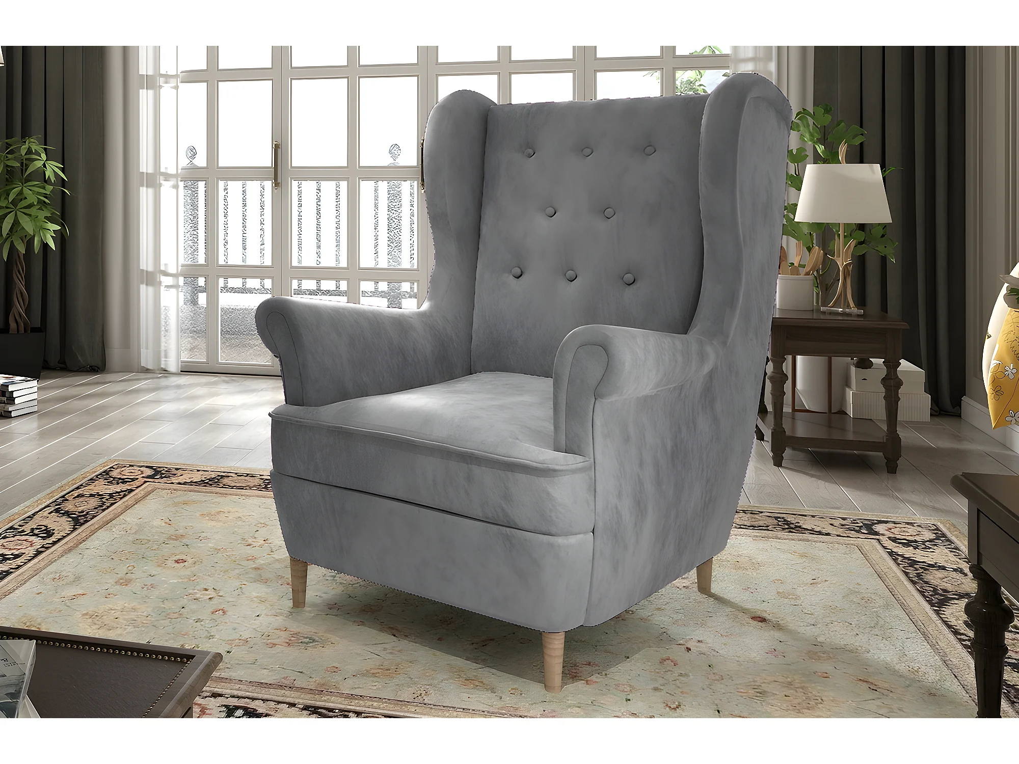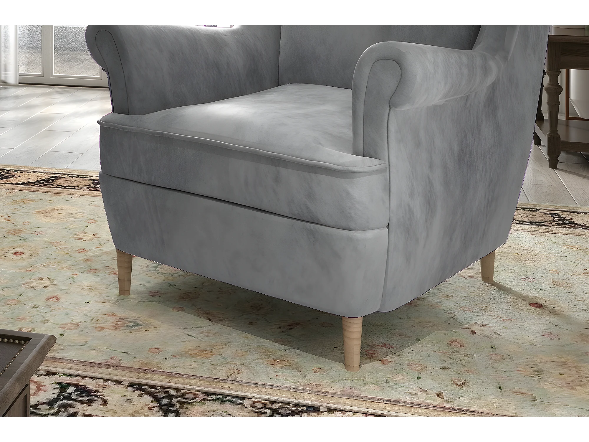 Fauteuil 1 place en tissu velours catégorie luxe, gris, ARNAUD