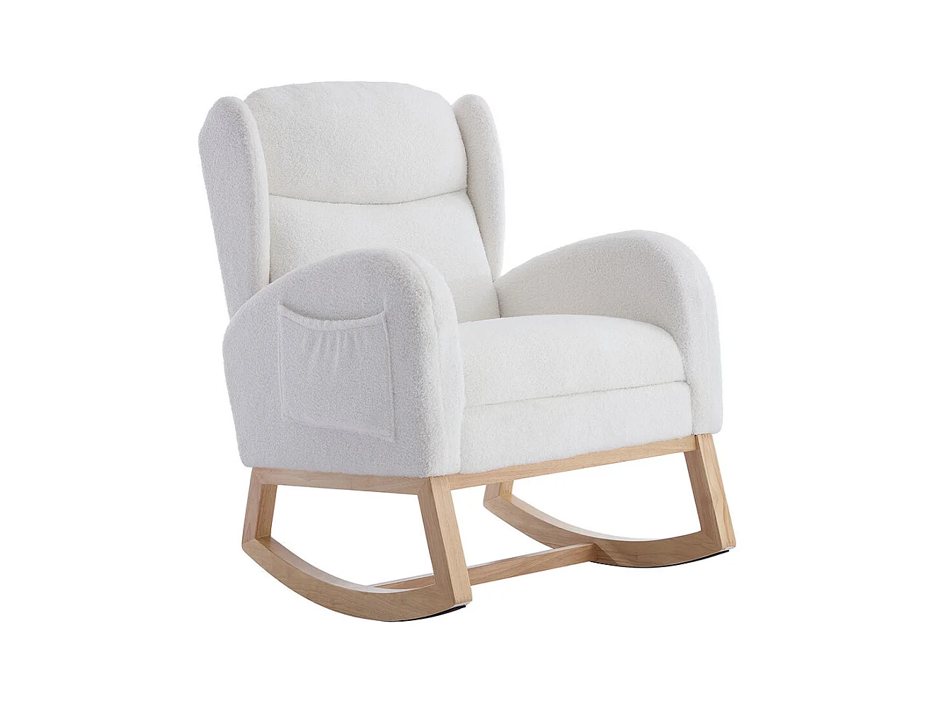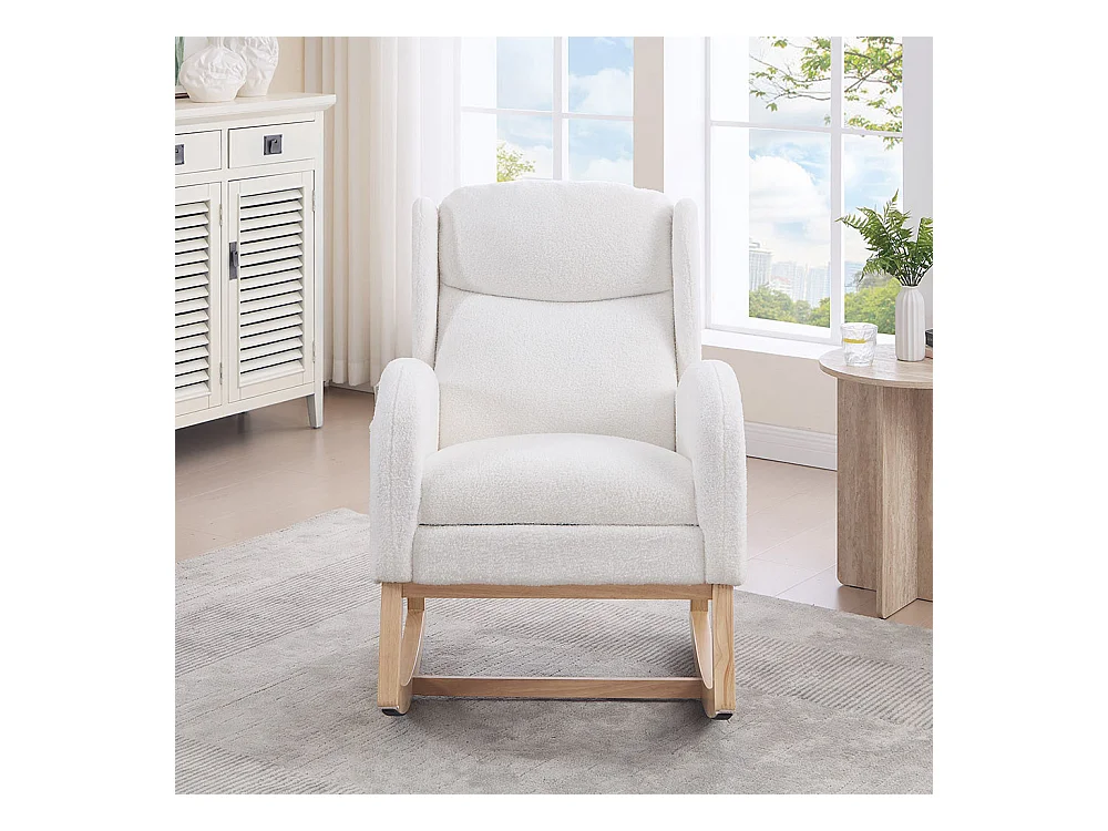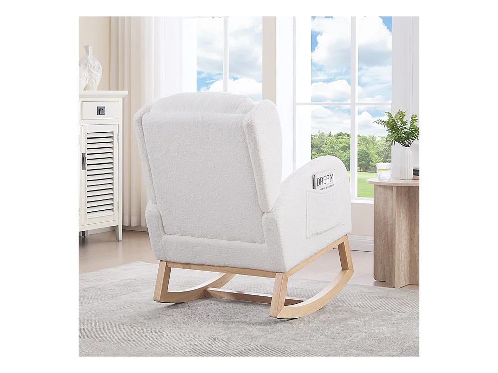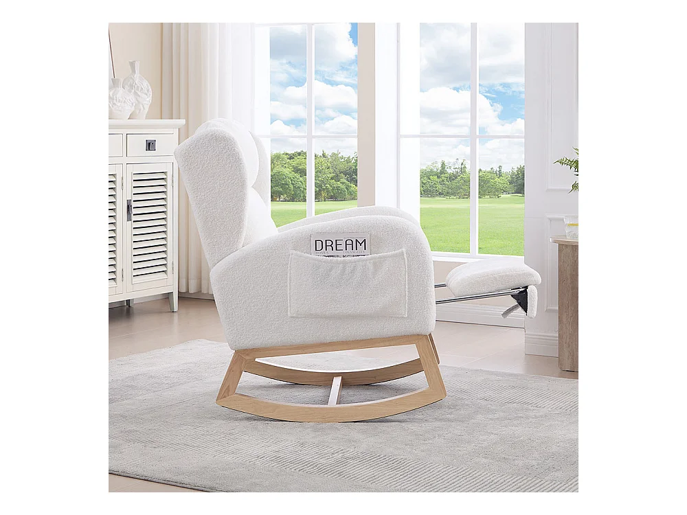 Fauteuil à bascule allaitement lounge structure bois repose-pieds réglable dossier haut Teddy poche appoint chambre salon blanc