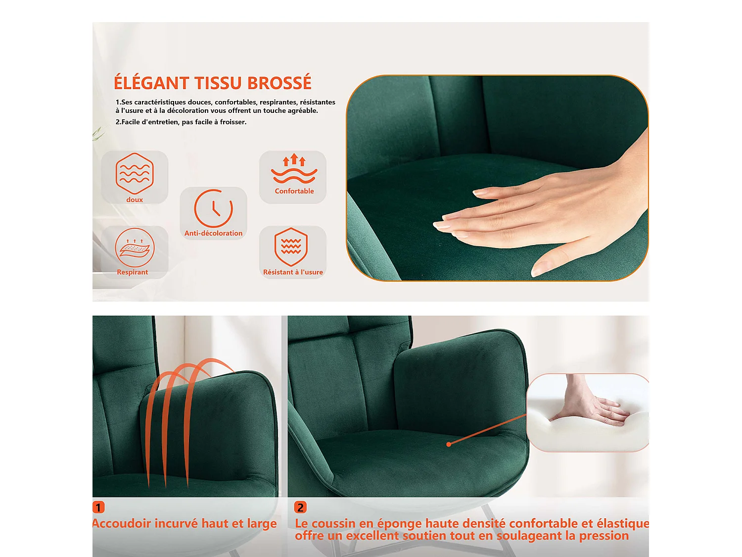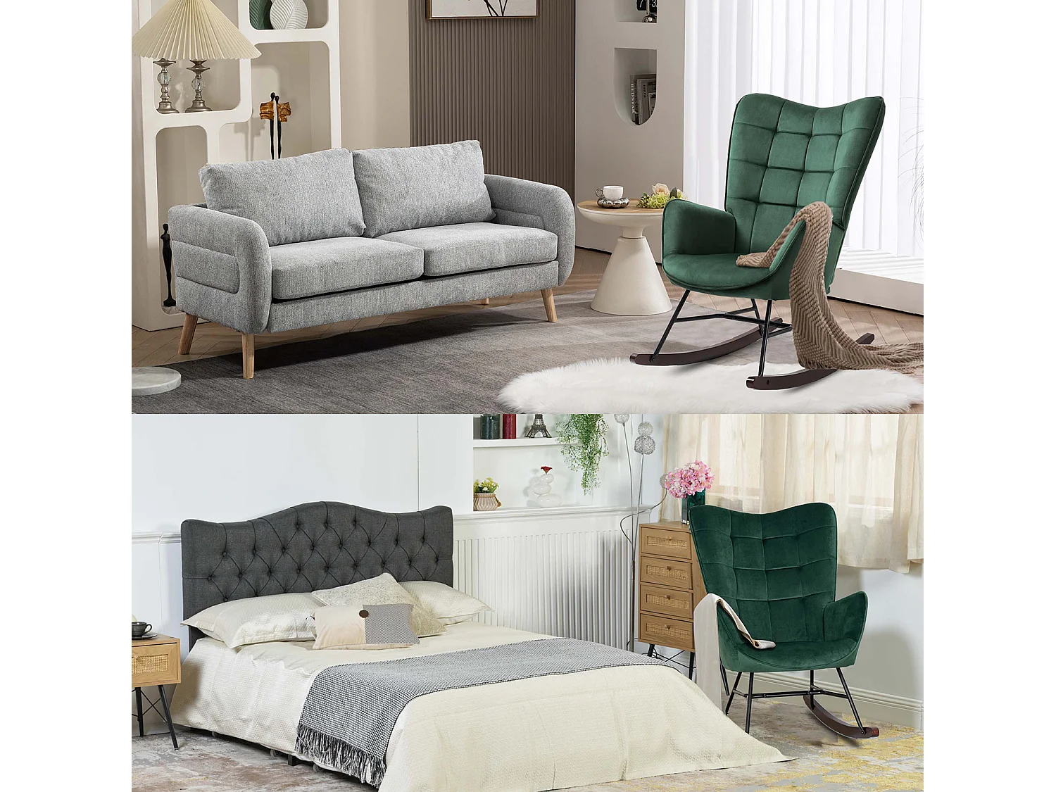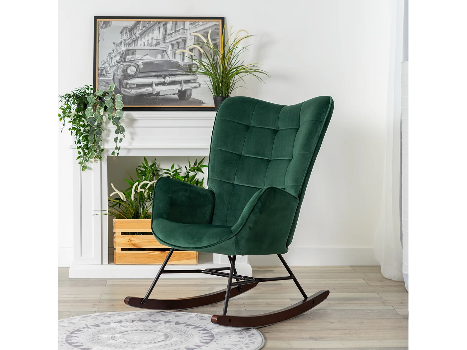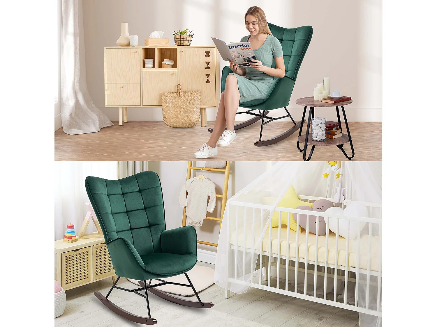 Fauteuil à bascule rocking chair fauteuil d'allaitement style scandinave en velours vert