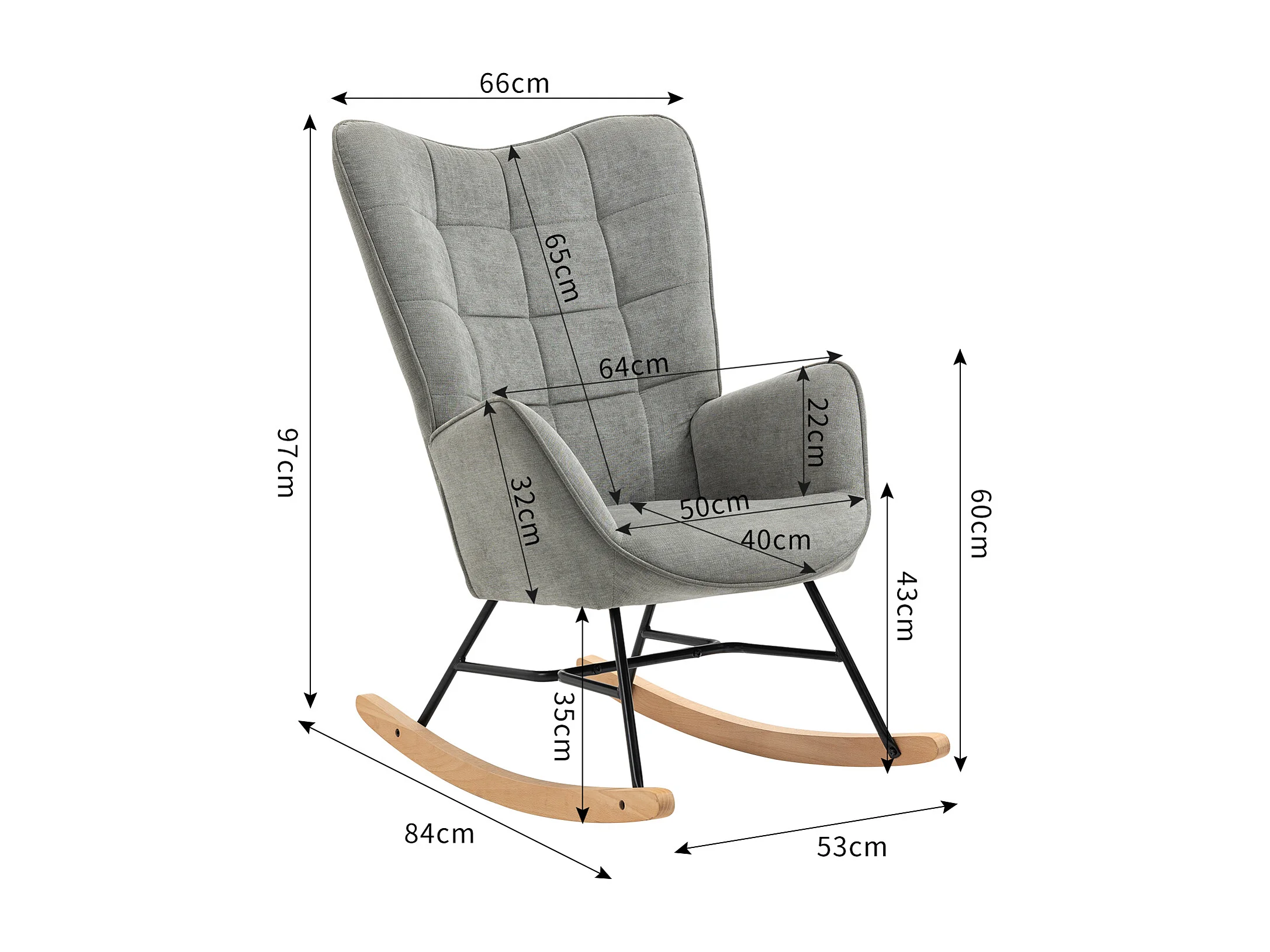 MEUBLES COSY Fauteuil à Bascule Allaitement Scandinave Chaise Loisir et Repos en Tissu avec Pieds en E' Bois Métal pour Salon, Chambre, Massif, Gris, 66x84x97cm