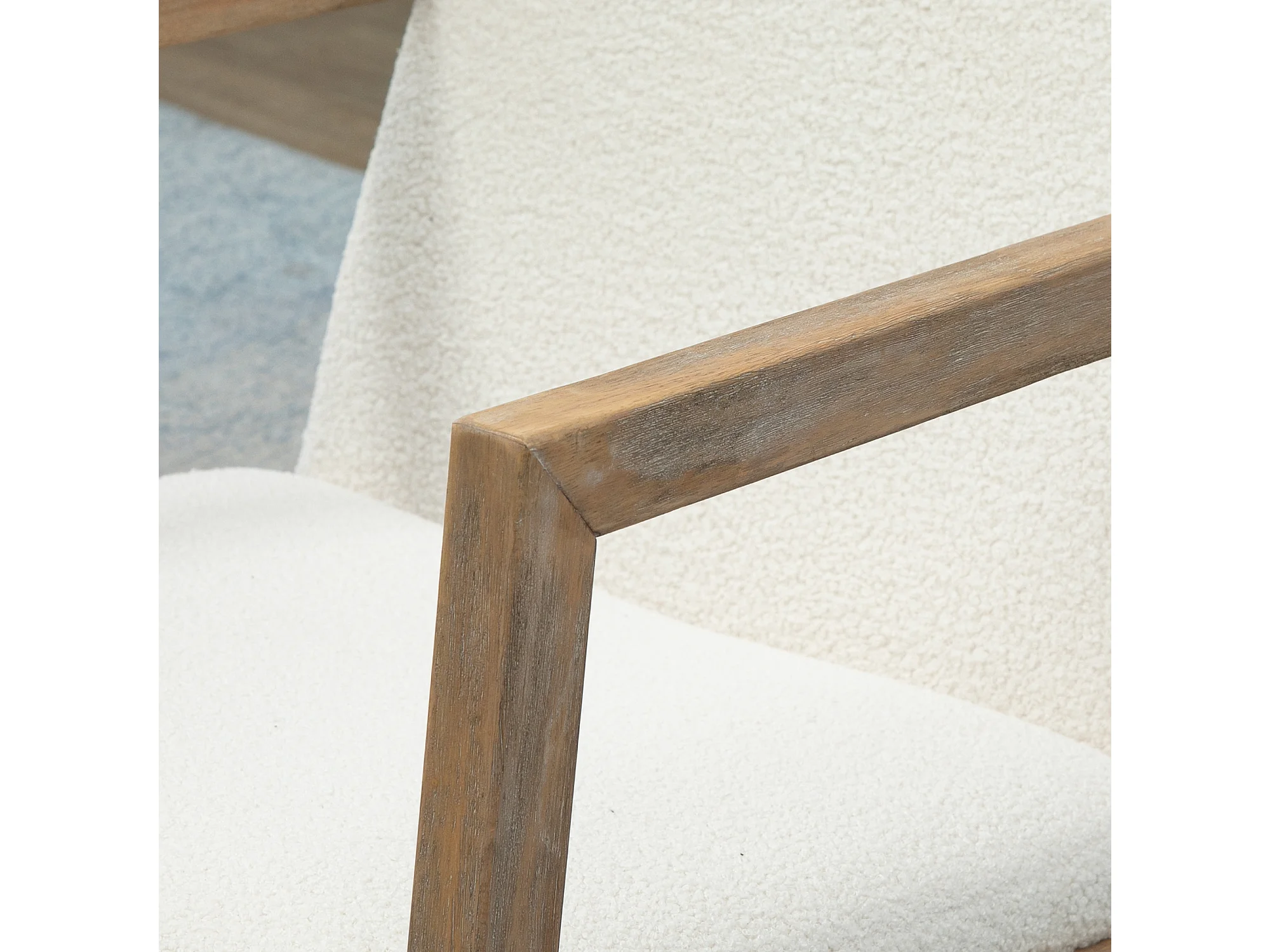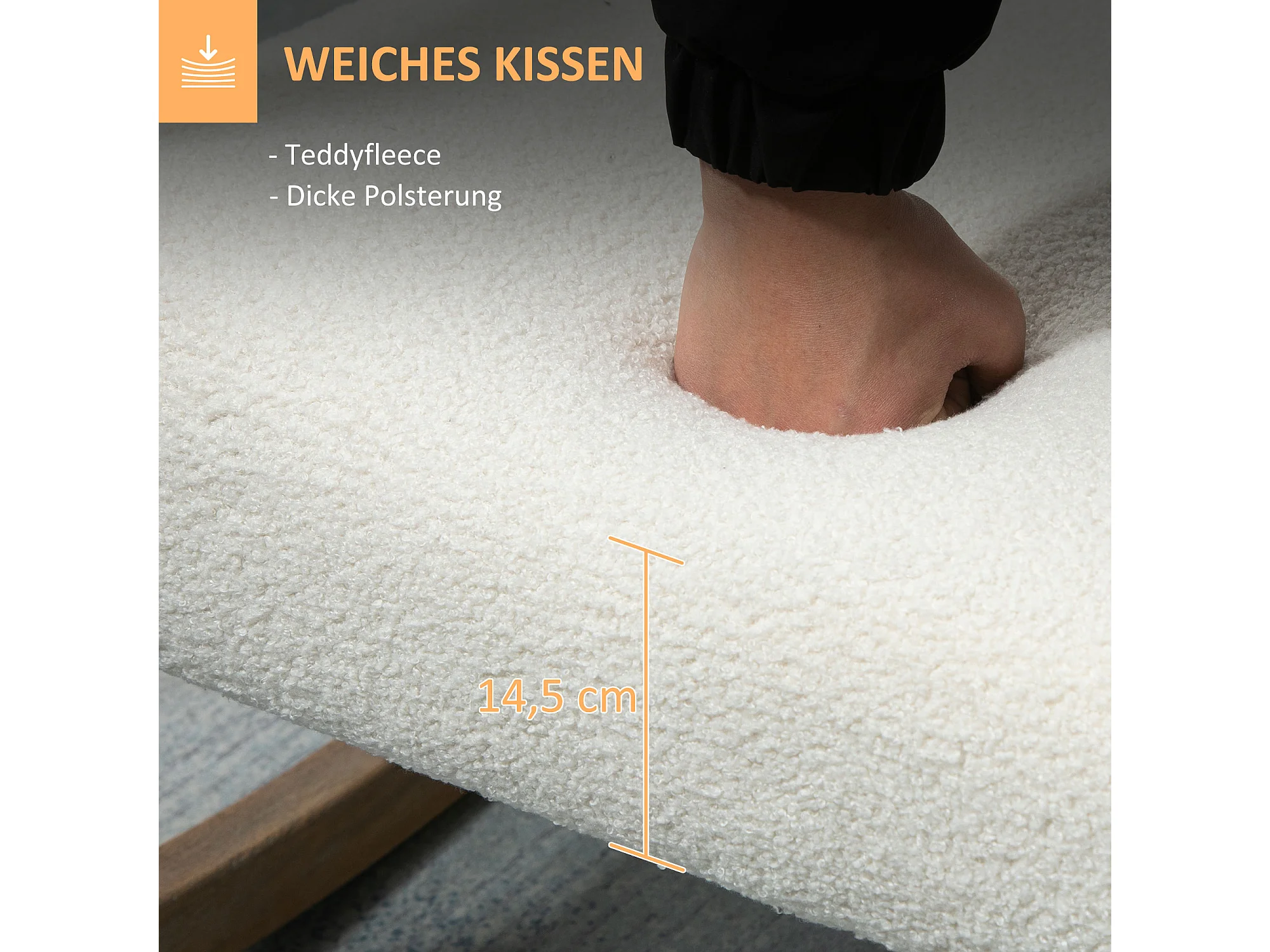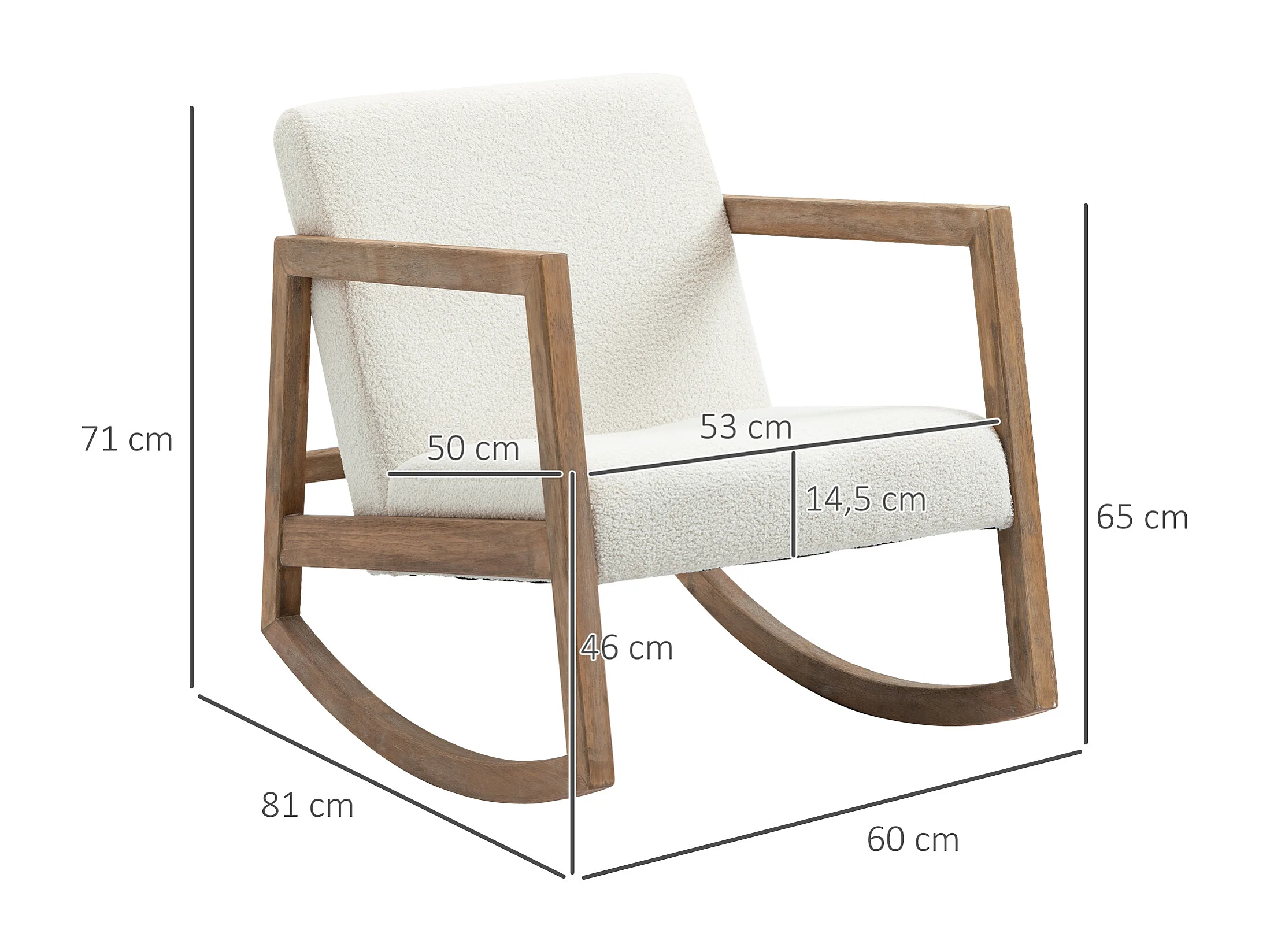 Fauteuil à bascule avec cadre en bois, coussins rembourrés, tissu polaire, crème (60x81x71 cm)