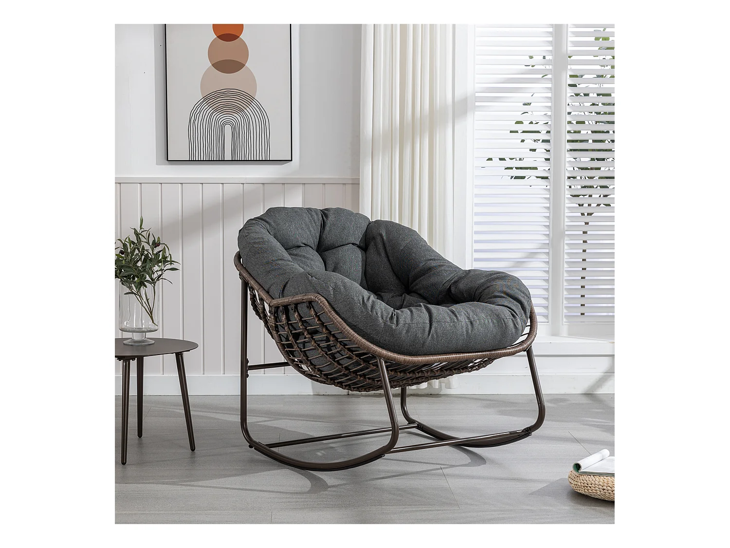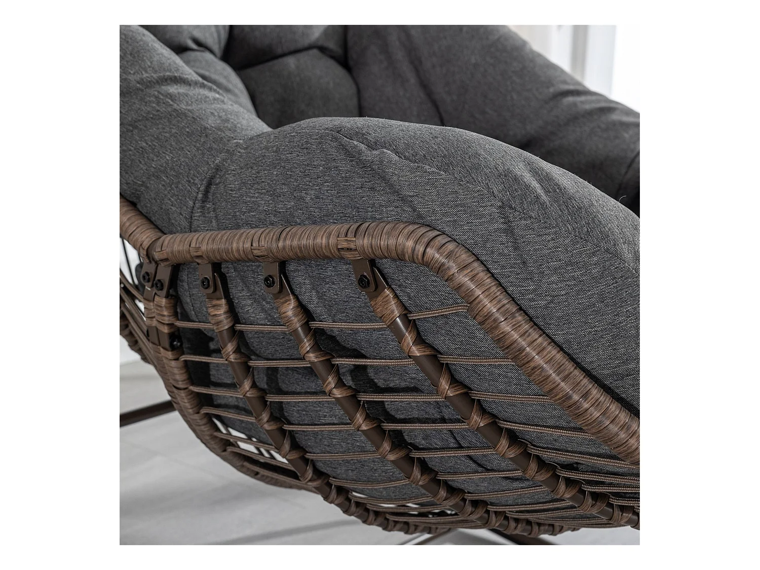Schommelstoel met gewatteerd kussen,rotan stoel met stalen frame,lounge stoel,voor woonkamer,slaapkamer,kantoor,tuin,111cmx94,5cmx80cm,Grijs