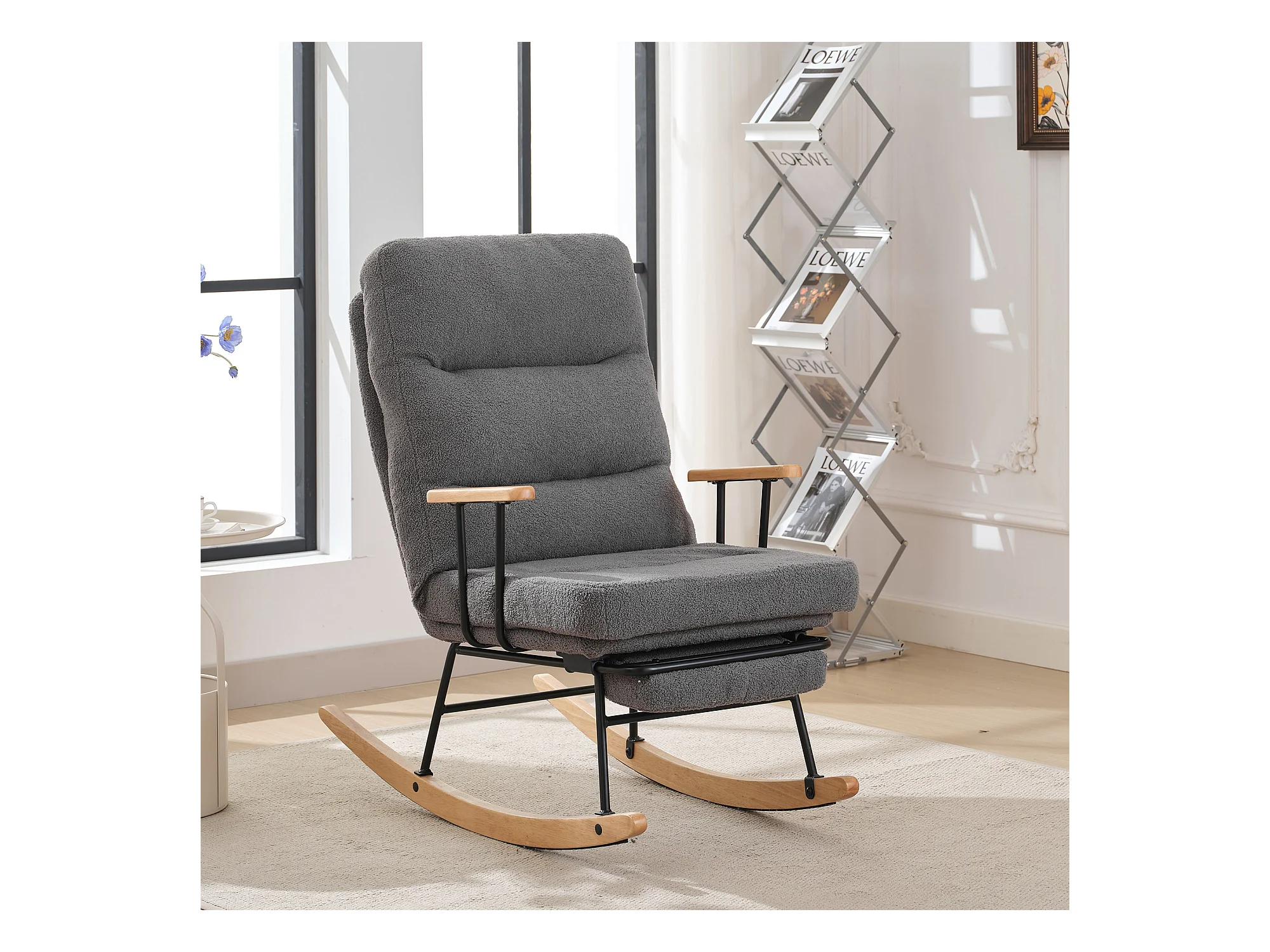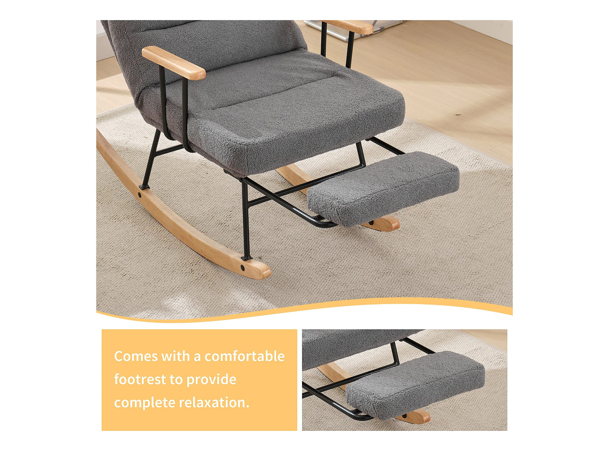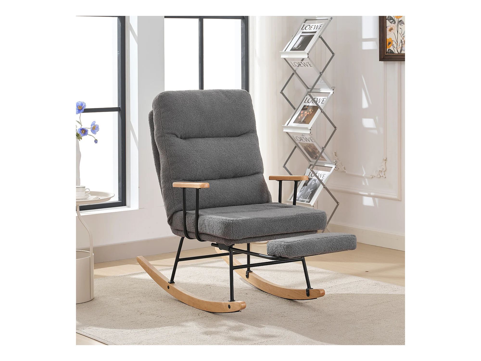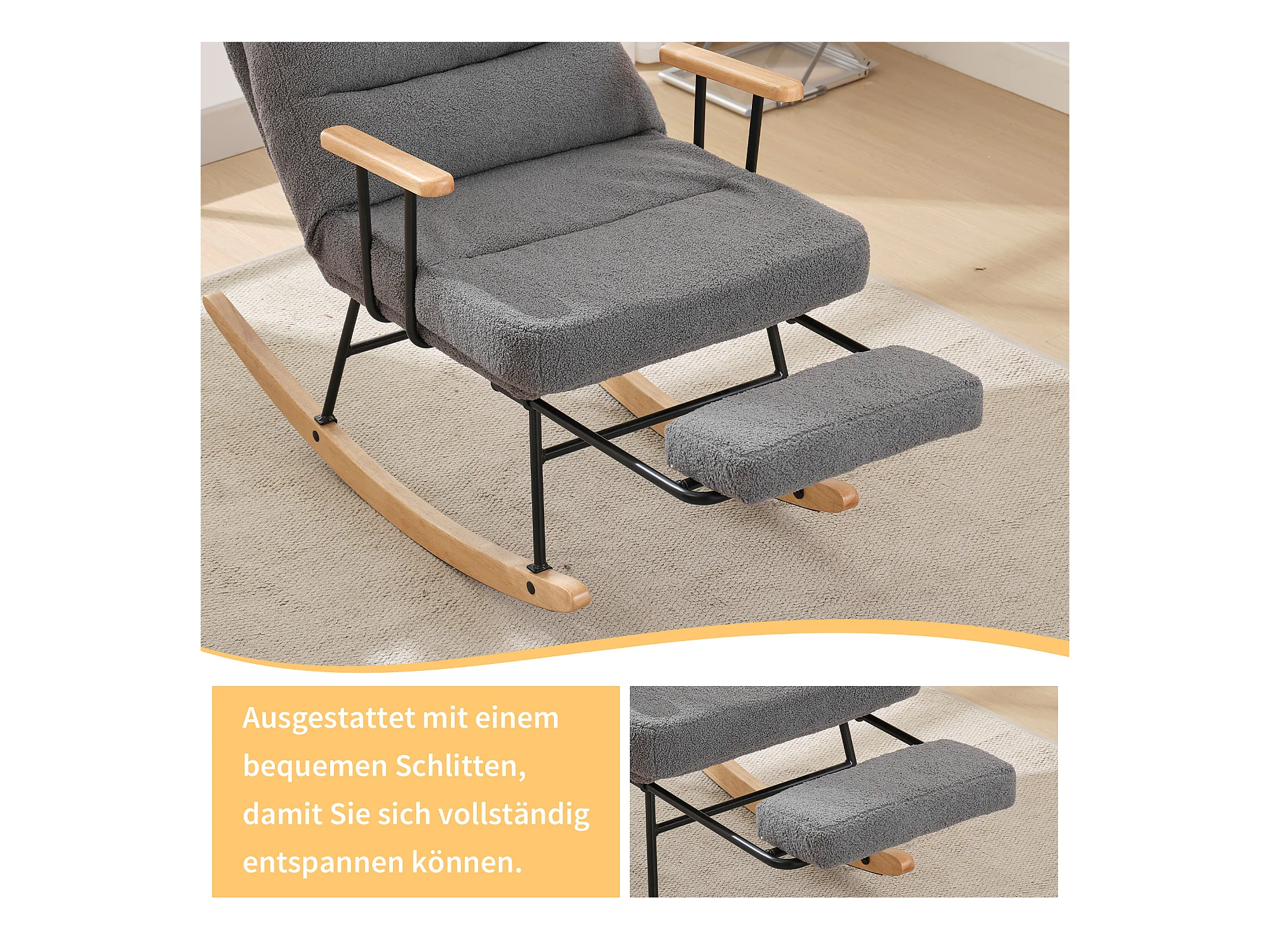 Fauteuil à bascule avec inclinaison et repose-pieds - 58 x 102 x 100 cm - Teddy-Polaire - Gris