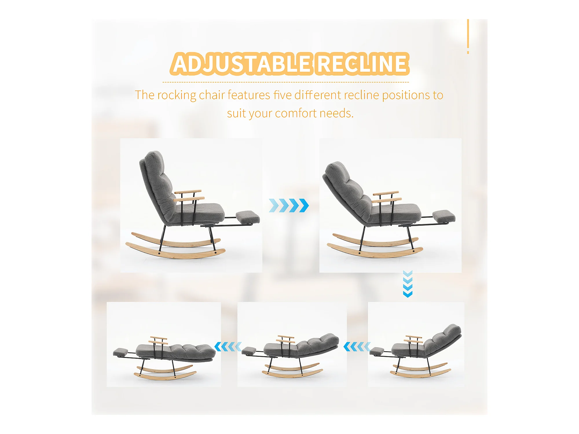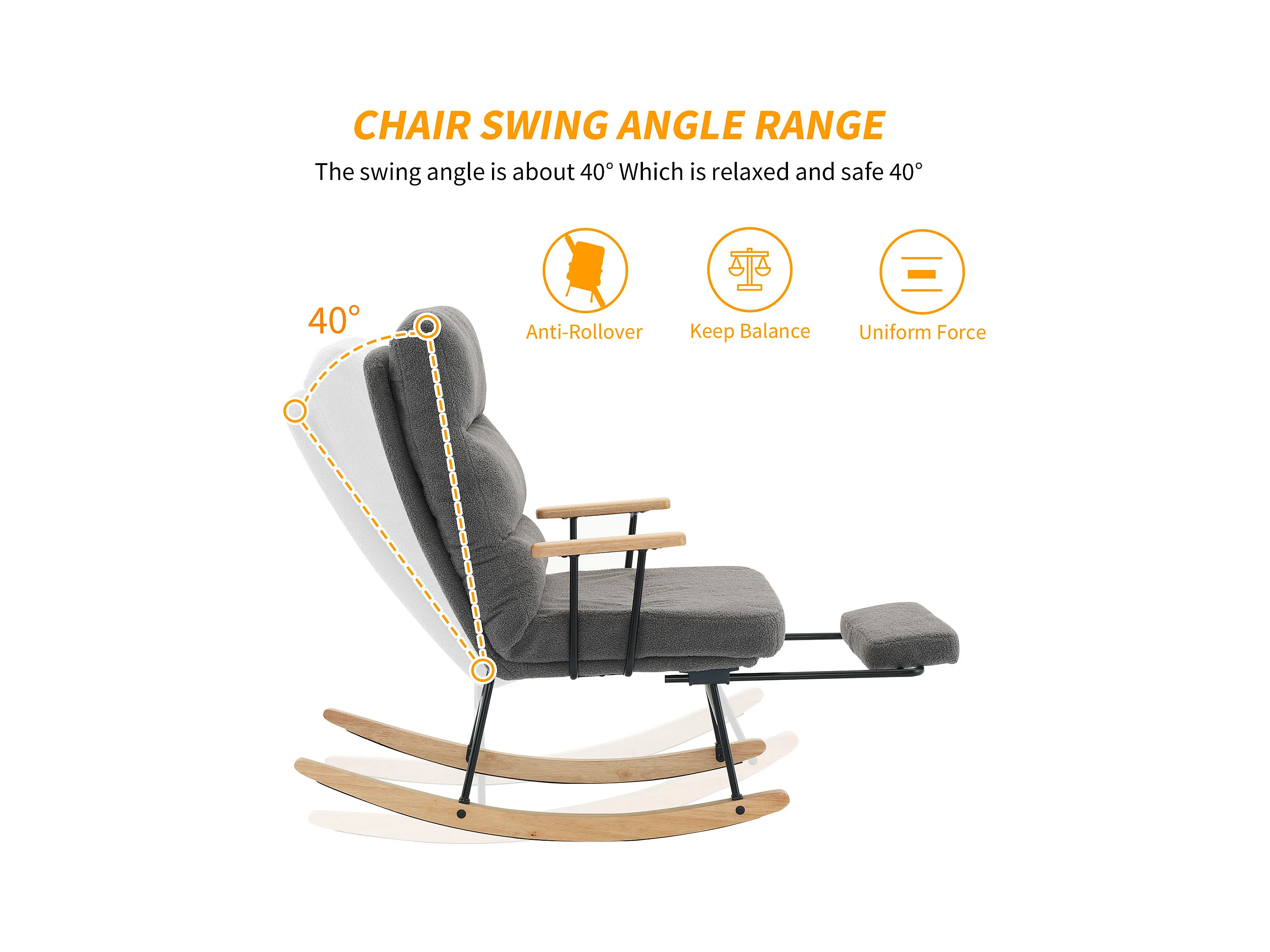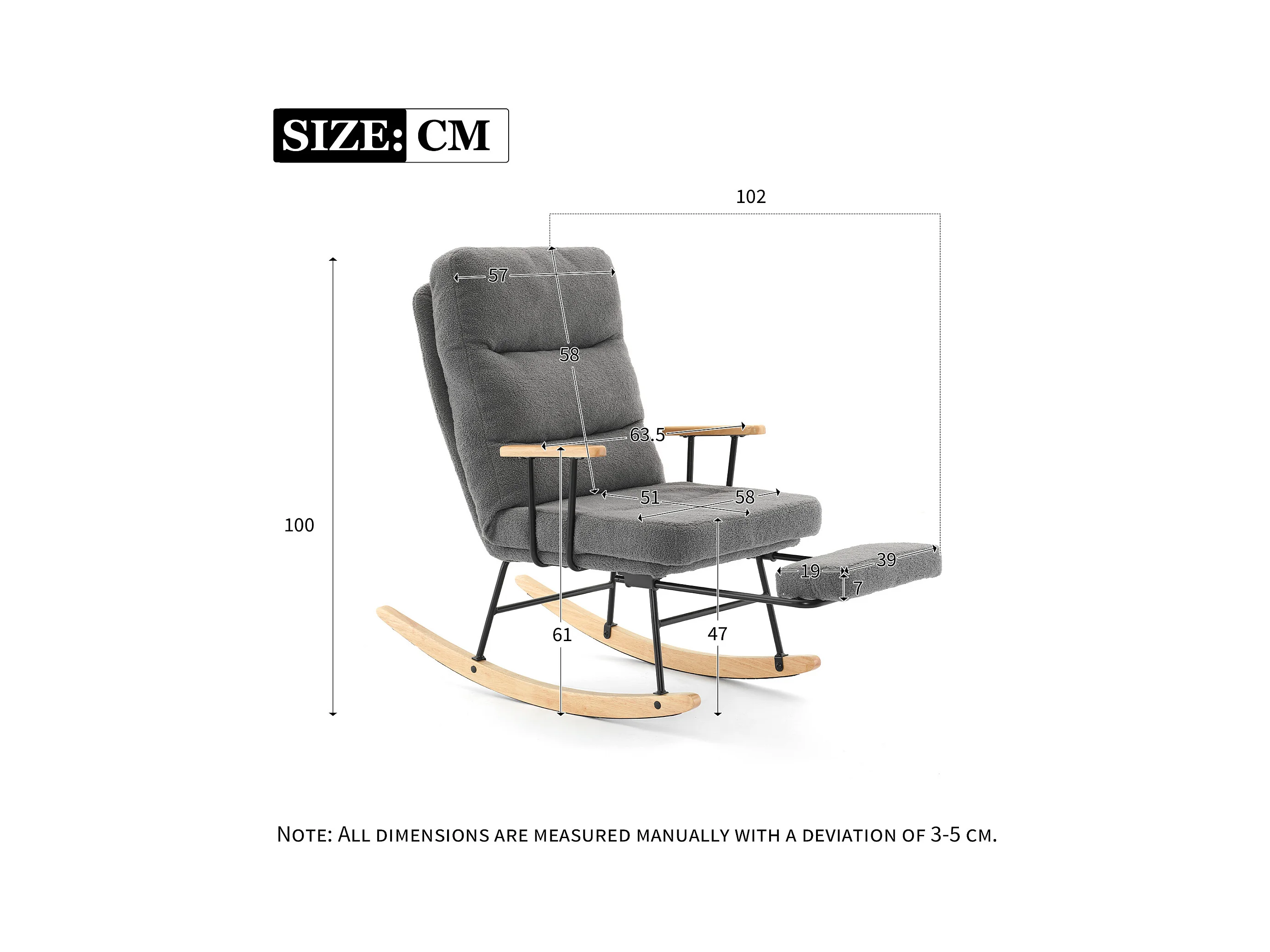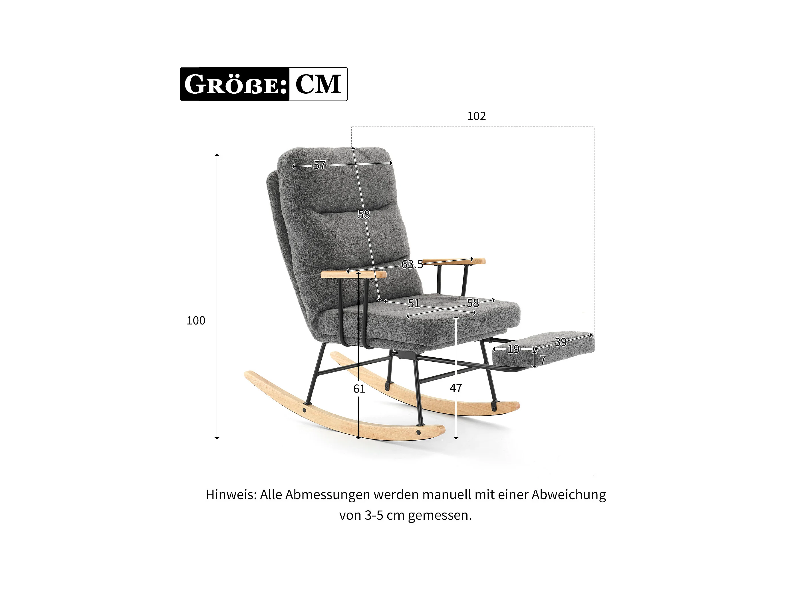 Fauteuil à bascule avec inclinaison et repose-pieds - 58 x 102 x 100 cm - Teddy-Polaire - Gris