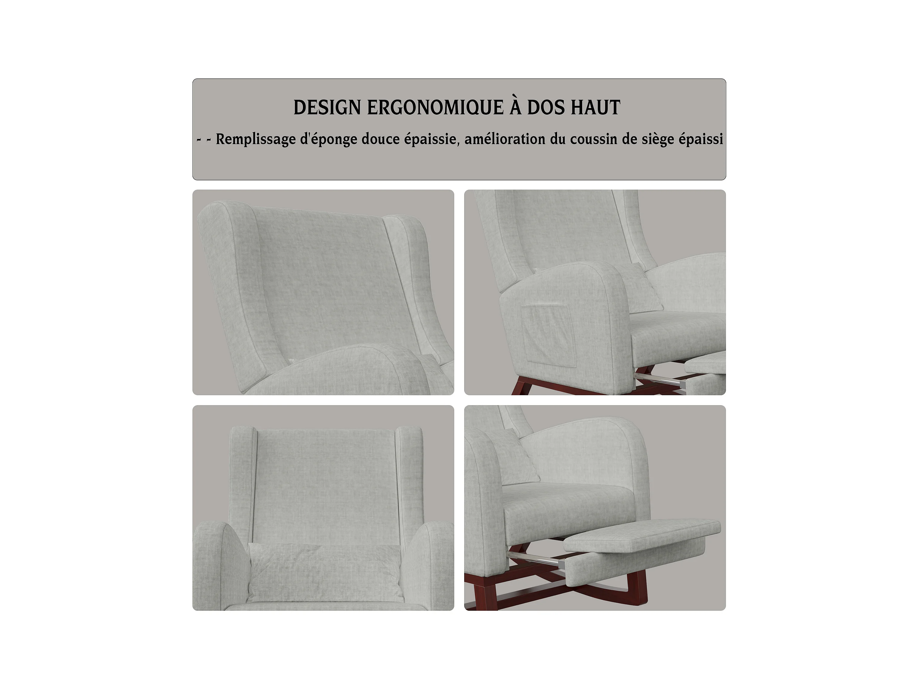 Fauteuil à bascule avec repose-pieds, pieds antidérapants en bois massif, chaise à bascule, gris